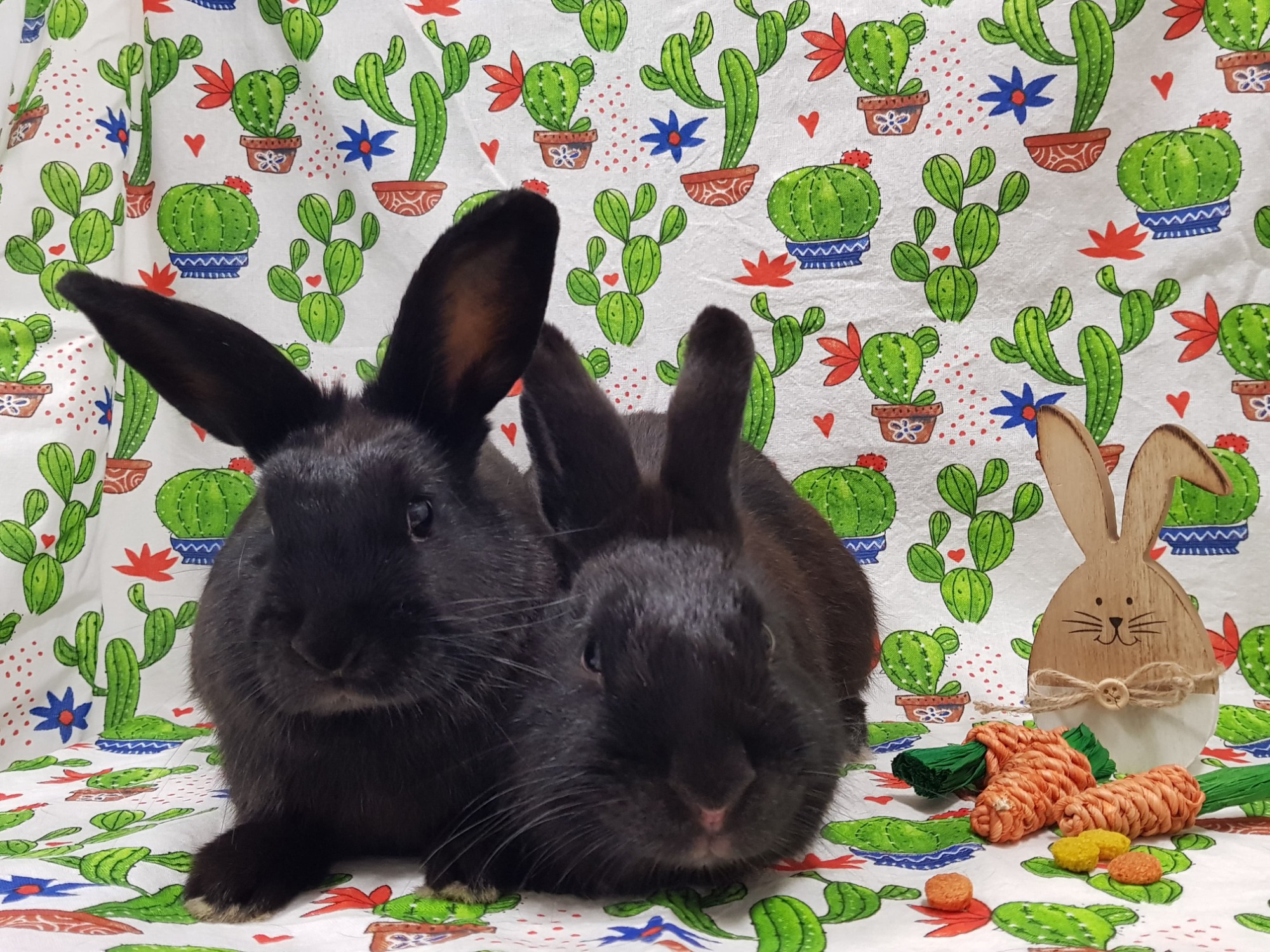 Hello! We are a bonded pair who just love head rubs and treats. We know that black pets are quite hard to re-home because we don’t take ‘good’ photos. In fact, there are a few other black bunnies here still waiting too! But we have silky soft fur and it catches the light in photos just as good as any other bunny… don’t you think? We don’t want to stay here long so please give us our furever loving home.