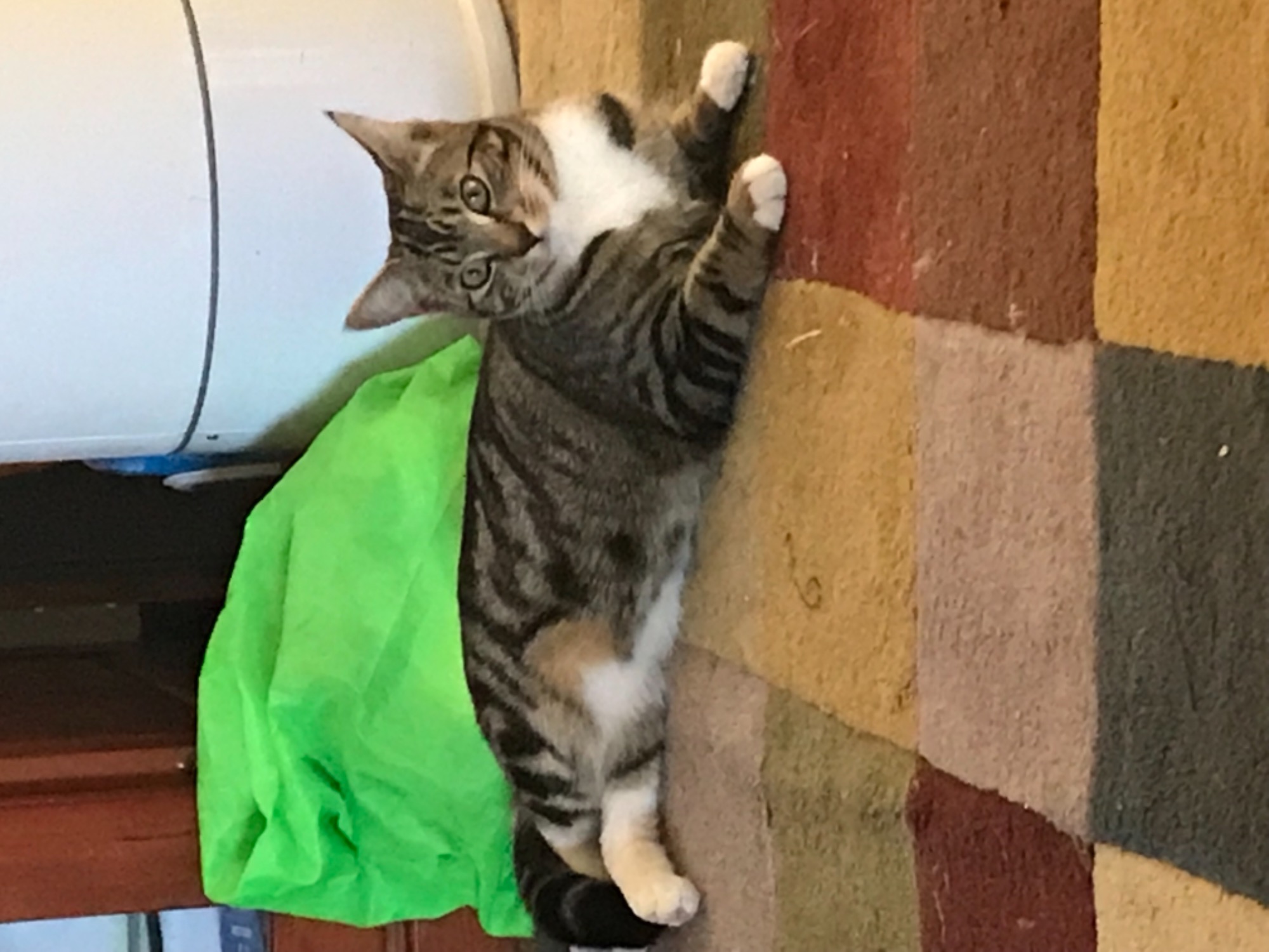 She’s a big bed snuggler, she loves a pat and isn’t fussed about being carried around like a baby in your arms.