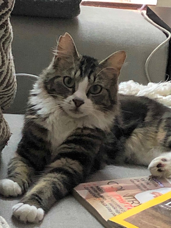 He will lick your fingers to death, likes his tummy rubbed and especially affectionate in the morning in bed. he purrs and follows you for his food, but doesn’t steal food off bench like her previous foster cat did. Likes to look out windows.