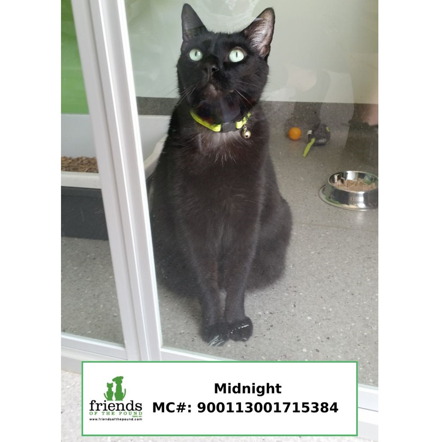 MIDNIGHT is a pretty black girl with light blue eyes. She is a friendly girl who would make a good companion cat.