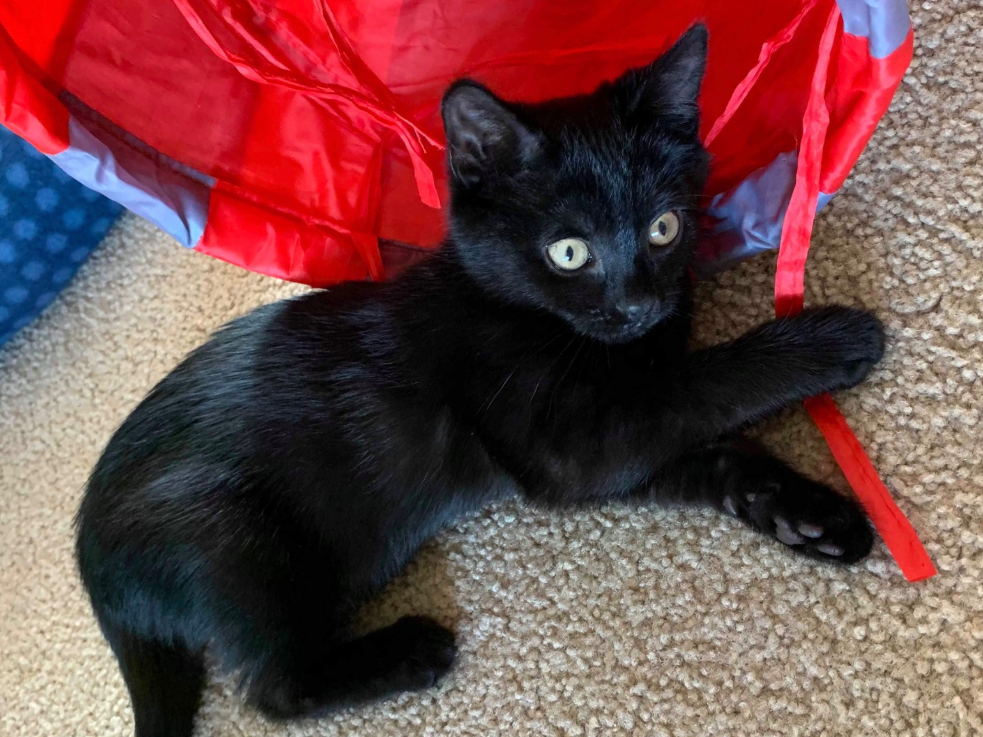 My name is Cinder and I'm an 11 week old Domestic Short hair kitten. I'm currently in foster care with 1 adult host cat as well as my foster family which includes children. I'm not currently living with dogs, but they do scare me a little.