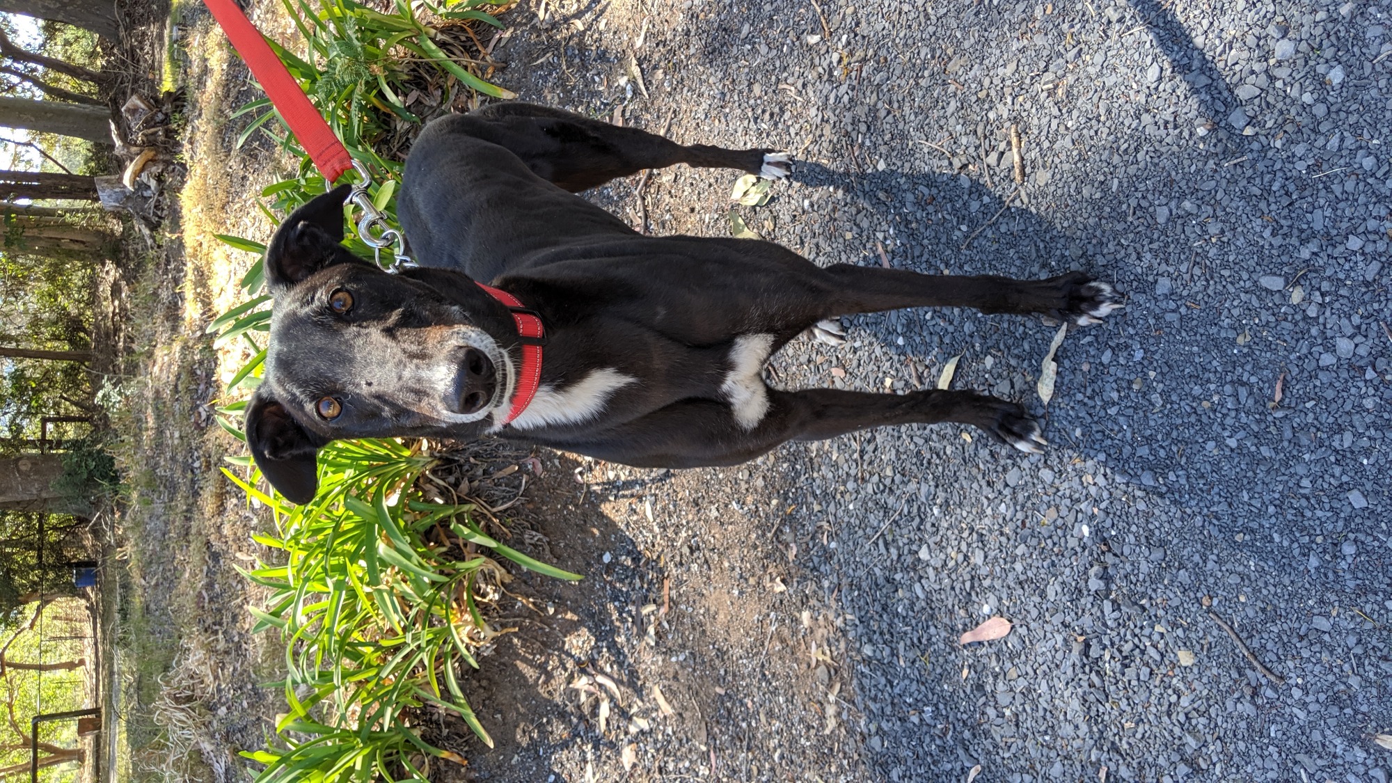 He can handle a family unit of older teens and is very comfortable being an only dog hanging inside or out. He would be suited to someone with previous large dog experience as he does like to do the odd counter surf and needs that comfort as a young dog that needs help in seeing new and exciting things. At his age, the world is one big learning space to enjoy and enjoy he does. Heads up though he is not going to bound right up to you and say let's go - so a tad of patience while he finds his feet with you will be a winner.