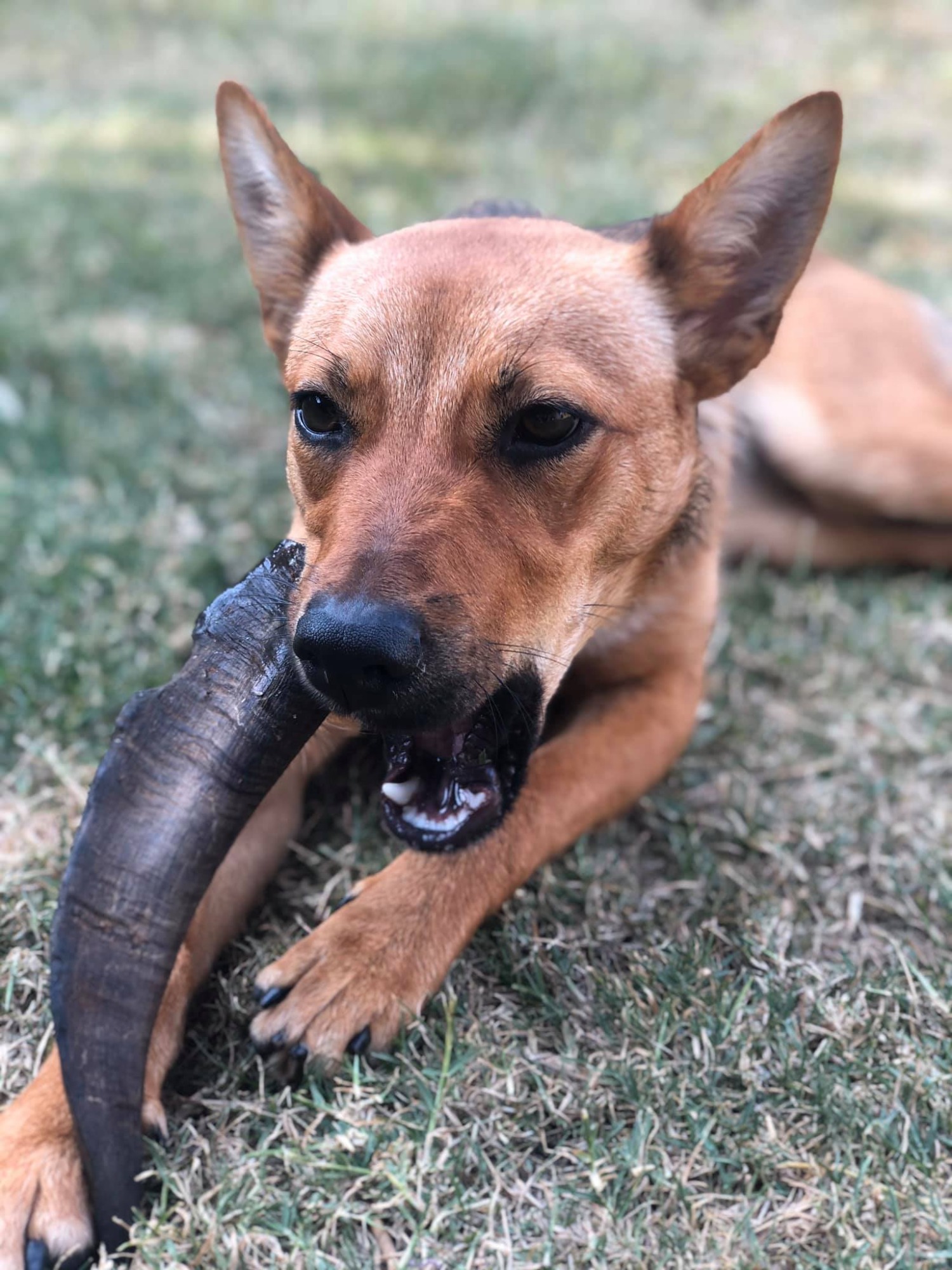 Frankie is an 11 month old Kelpie x Cattle Dog mix. She has settled in perfectly to her foster home and gets along great with both the resident dog (a toy poodle) and foster dog (a border collie mix) at her foster home. She loves to play with other dogs and do zoomies around the yard with a ball in her mouth asking them to chase her! She has shown no signs of food or toy resource guarding and is more than happy to share her things.