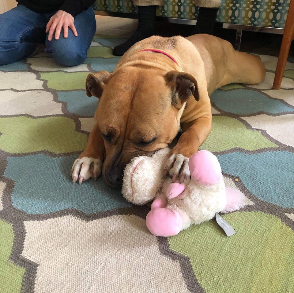 I can’t wait to find my forever family to hang out with. I'm a laid back girl that loves to be close to her people and all I need is my teddy to carry around in my mouth and some cuddle time!
