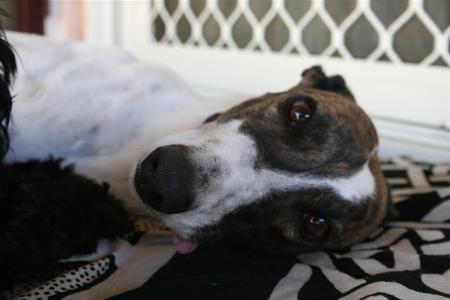 Like all the greyhounds i home bree is an ex-racer (but obviously not a very fast one!). She is doing well in foster care and immediately took to the dog belonging to her foster carer as can be seen from her pictures. She is a gentle girl but playful between bouts of resting. Bree needs to be part of a loving family, and allowed inside