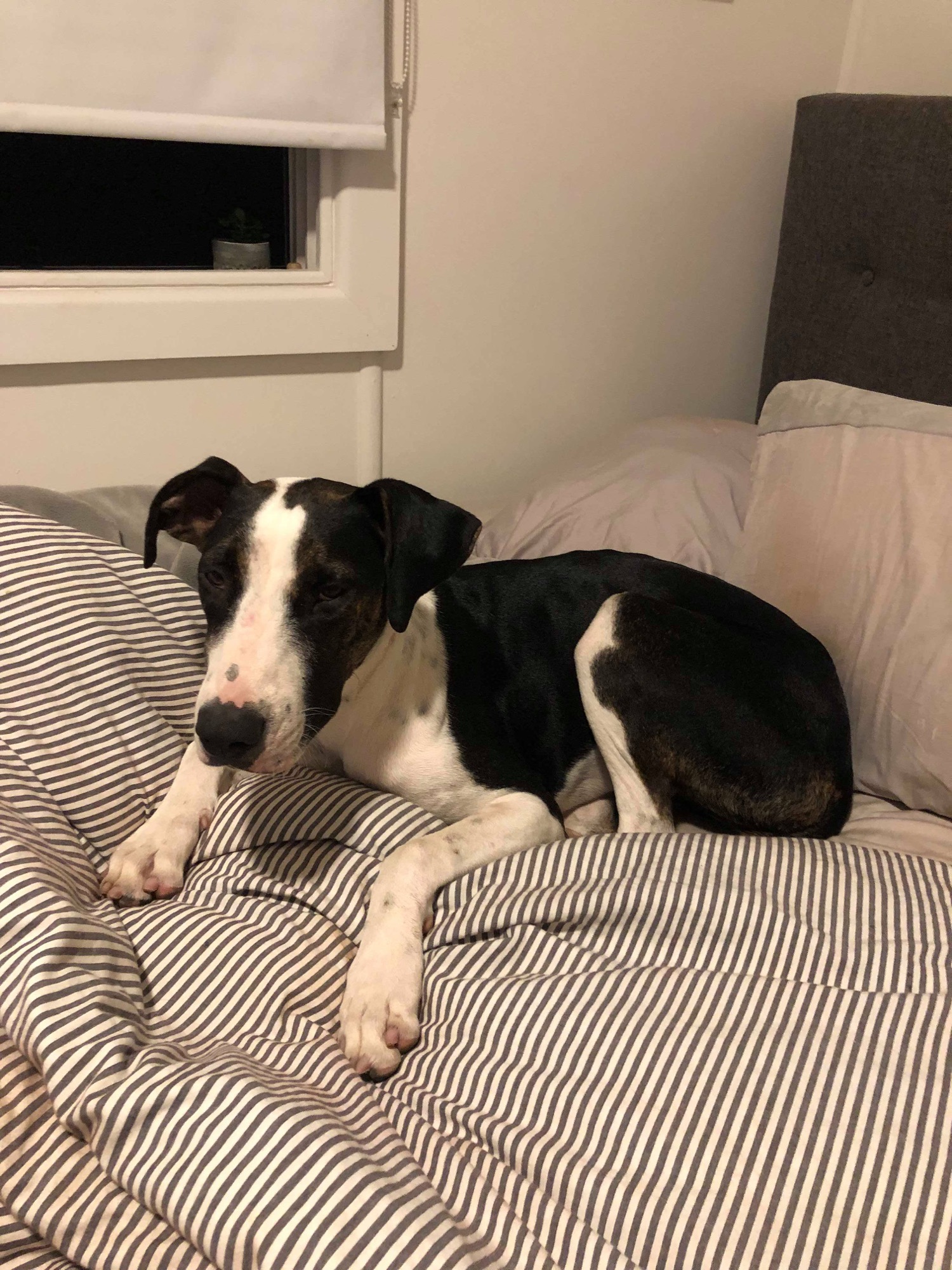 She is good inside and is very gentle with her foster carers kids. She is great at cuddling them. She considers herself a bit of a lap dog (despite her size) and counts down the minutes until she can snuggle with you.