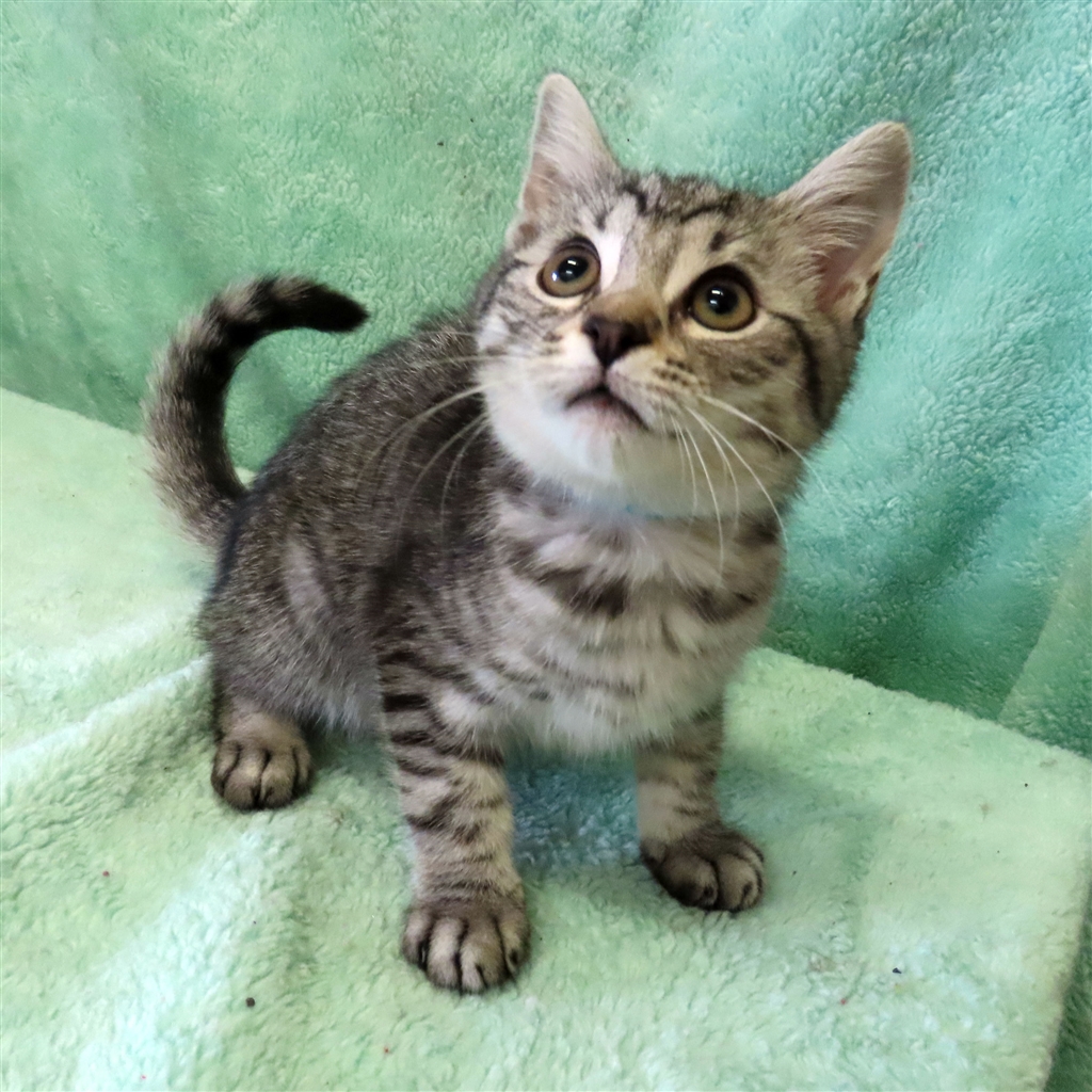 Ready to take on the world is Wattle. Like all kittens she has energy to burn, games to play and growing to do. Eager to explore new things and meet new people, this young man would be well suited to any sized home.