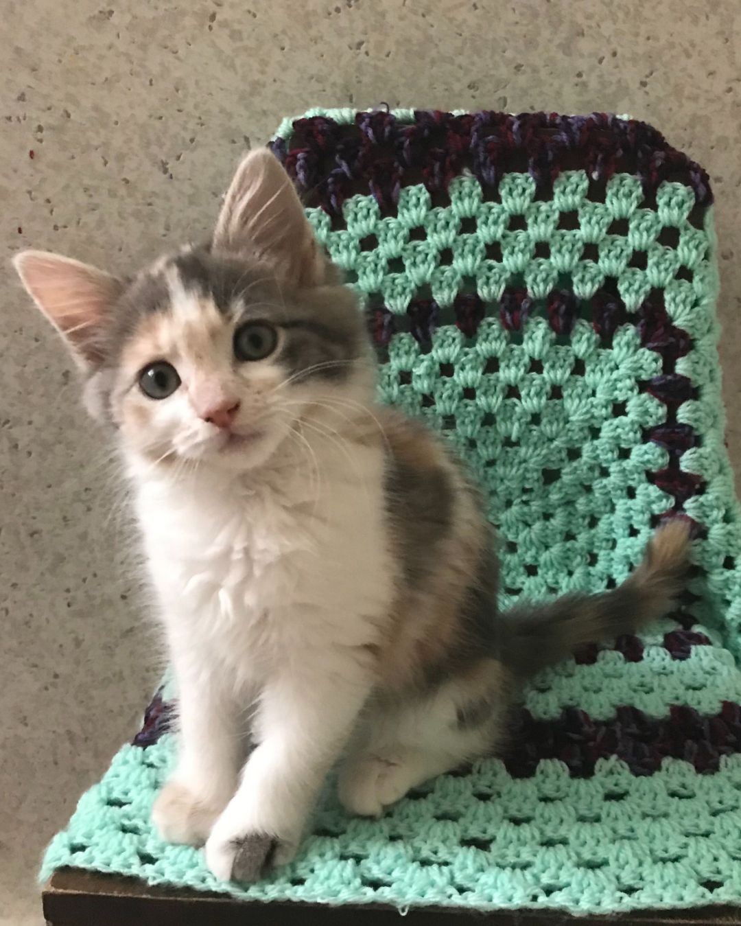 Tessa’s gorgeous eyes and calico fur set her aside from the crowd, along with her pretty coloured paws.