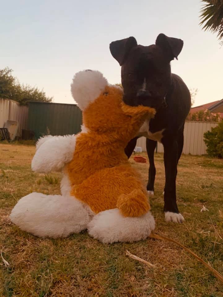 Snickers cannot be homed with cats and is a bit too big and playful for small dogs.