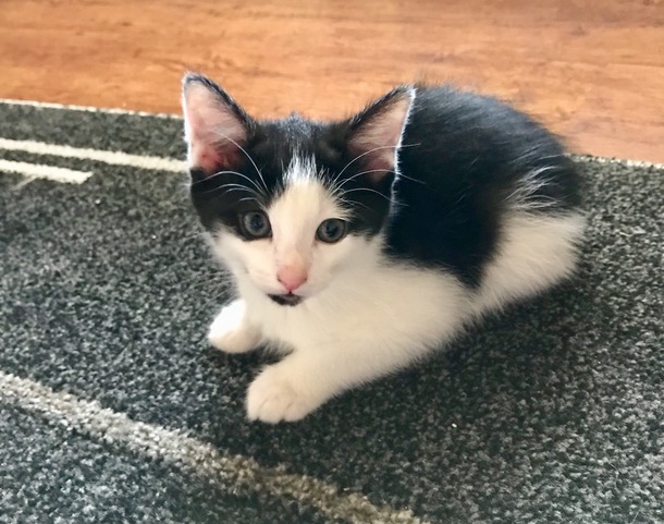 This exceptionally handsome black and white fellow is Jo. Jo is 8 weeks old and ready for a new home to call his own. Jo is an extremely sweet, outgoing, playful kitten who enjoys nothing more than snuggling up to his human friends and wrestling with his siblings. Jo was born in care and has been living with a foster carer with his siblings and his mum Tinkerbell, but he is now ready to fly the coup.
