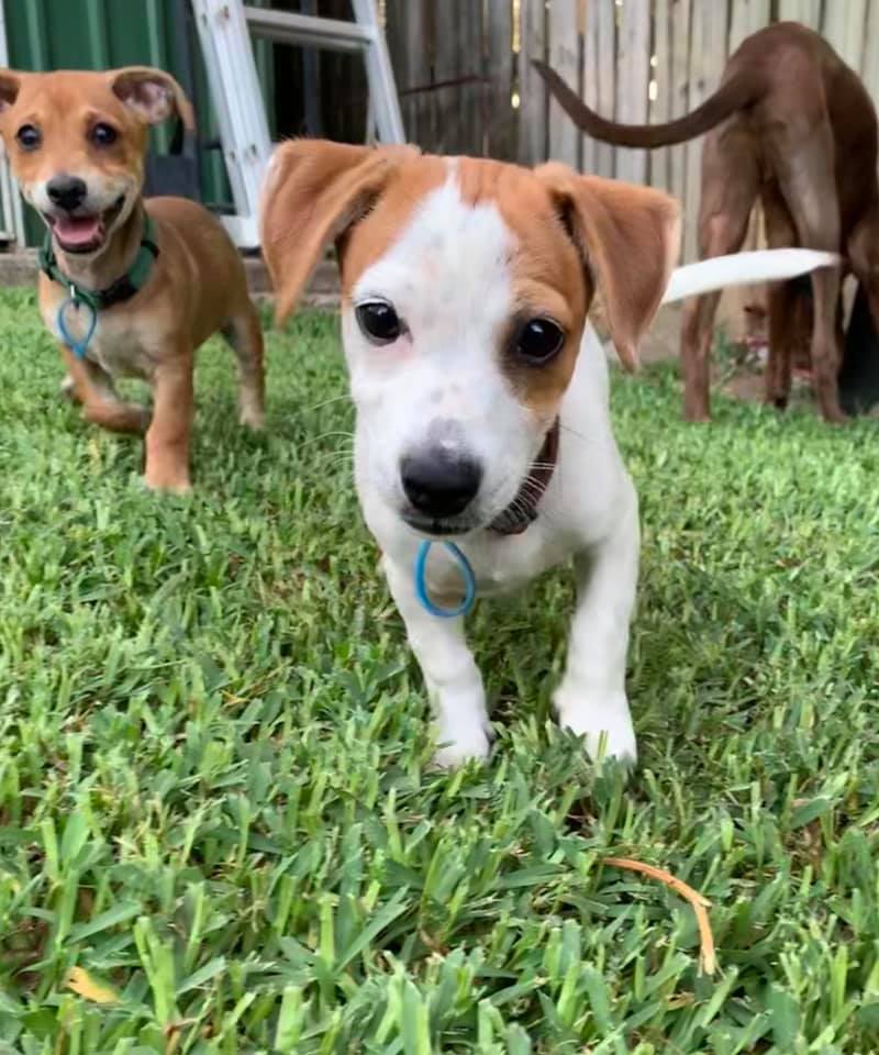 Flash is the most outgoing and adventurous of the litter. He is always out exploring the backyard and running with the other dogs. He will need a very active home that will provide him with lots of mental and physical stimulation. He would do well with another doggy friend.