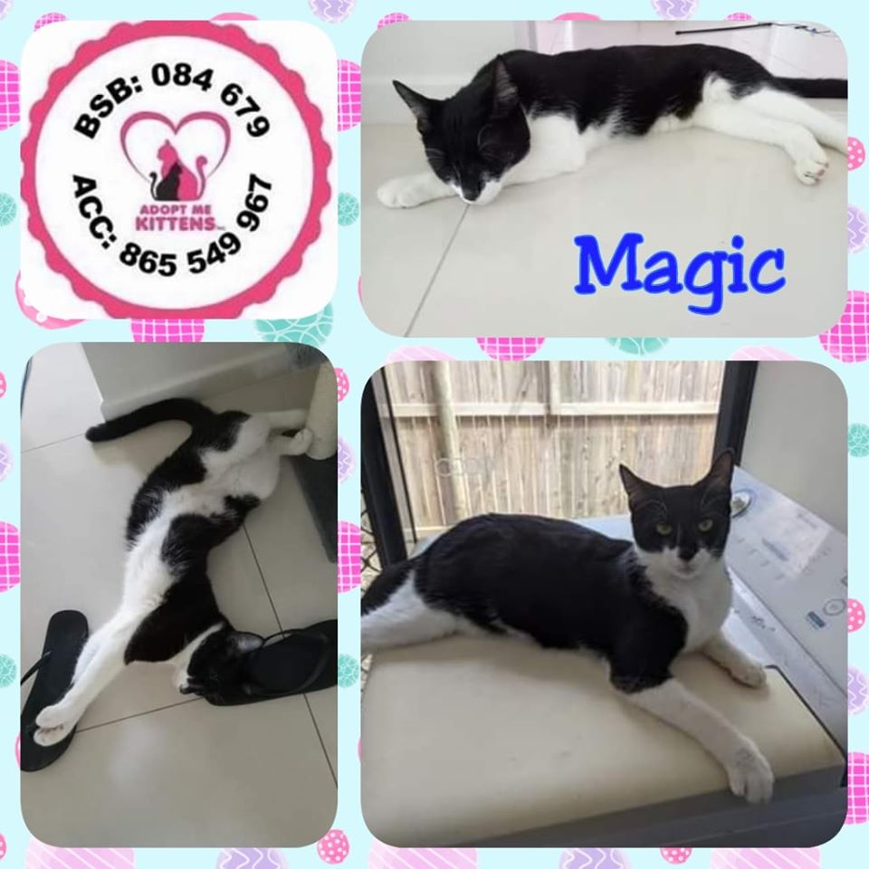 Magic is a super chill cat and will settle in and make himself at home pretty quickly. He loves a good belly rub and sleeping in awkward looking positions. He is settlined back into care and likes to follow his foster carers around the house to see what they are up to.
