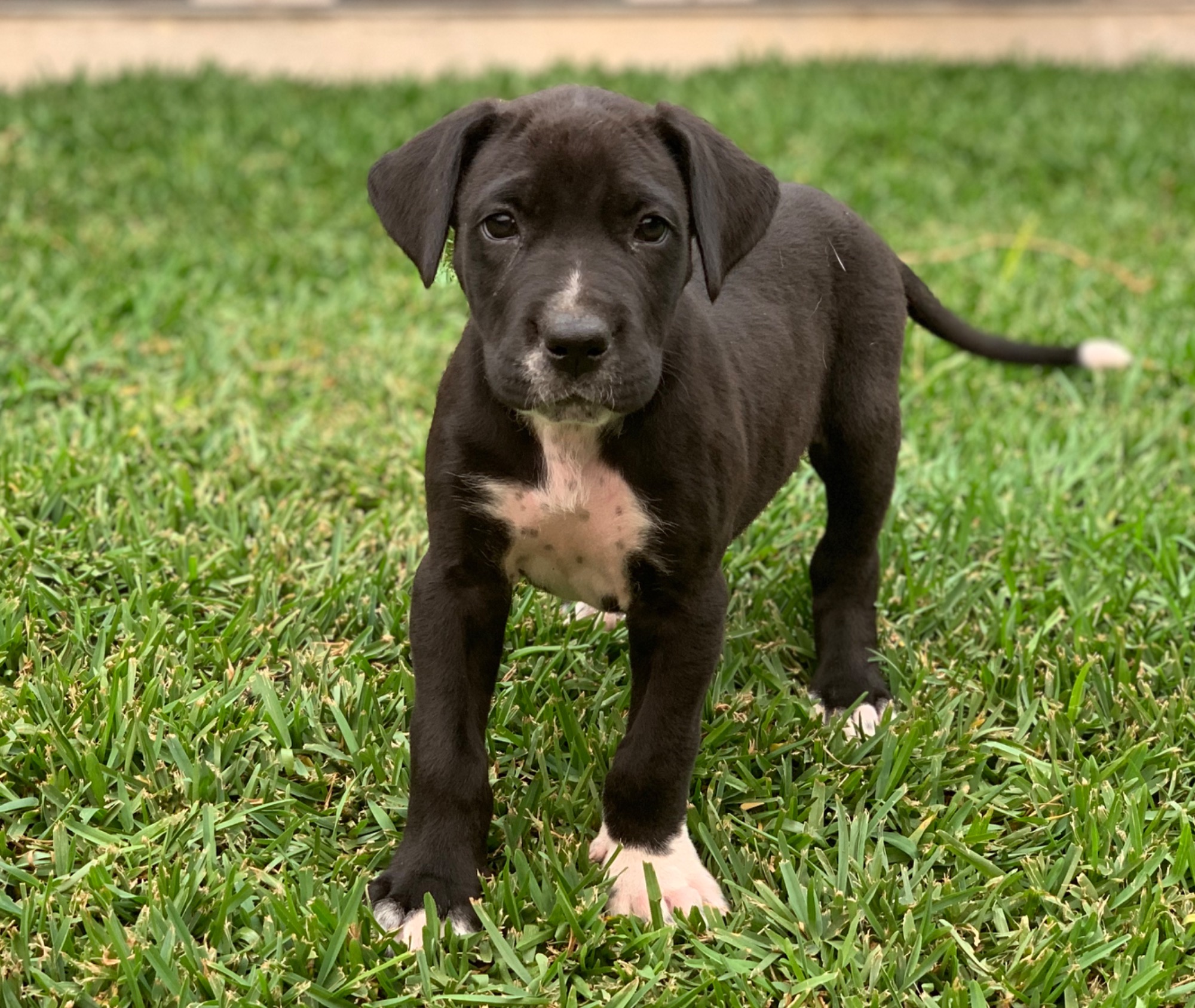 Playful Belinda arrived in care at 6 weeks old. She is 1 of 6 Great Dane x babies and currently in foster care with her Brother Bart, 1 Host Dog, and of course her humans that include children. She has also had exposure to cats during her time in care and has not shown any interest in them at all.