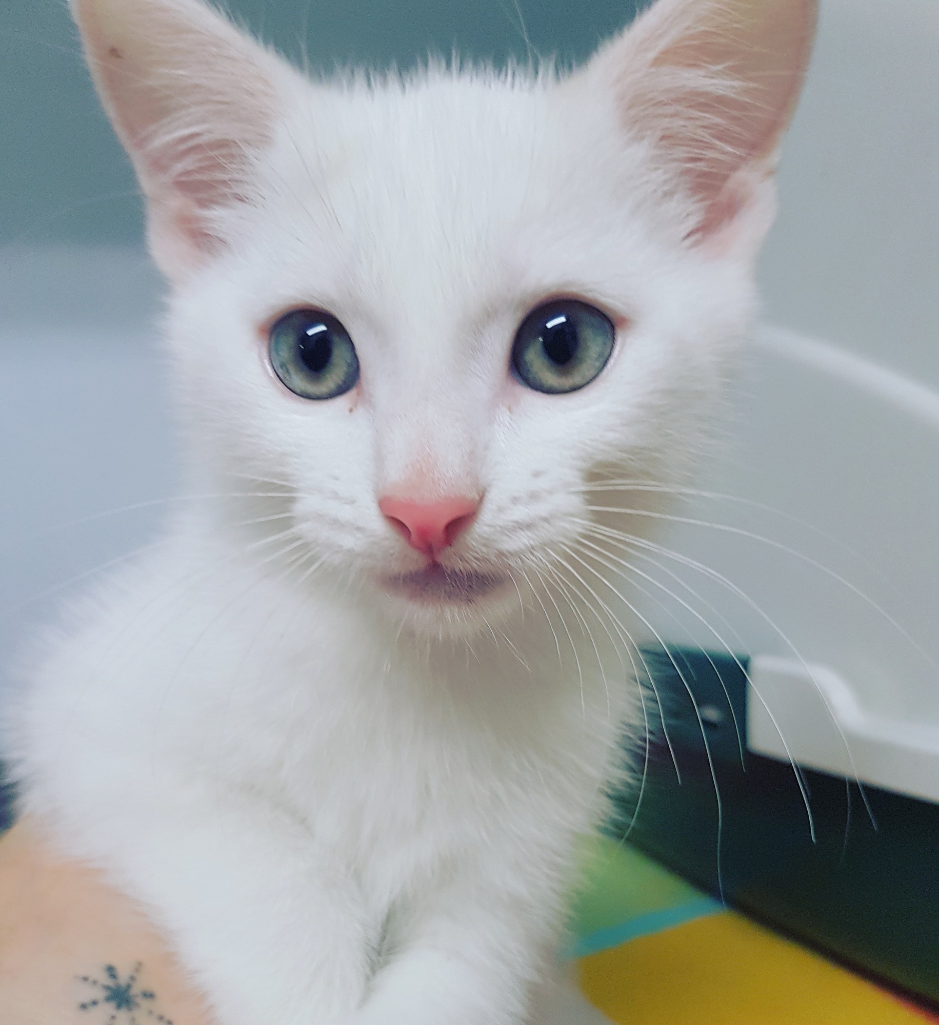 Humphrey arrived into our care with his mum "Mango" after they were sprung from death row in a northern pound. Last week Humphrey was vet checked, desexed, microchipped, and vaccinated, and is now ready to find his forever family. He has a gorgeous white coat with some pale ginger splotches and a ginger tail. Due to his very pink features, Humphrey must remain as a strictly indoor only cat.