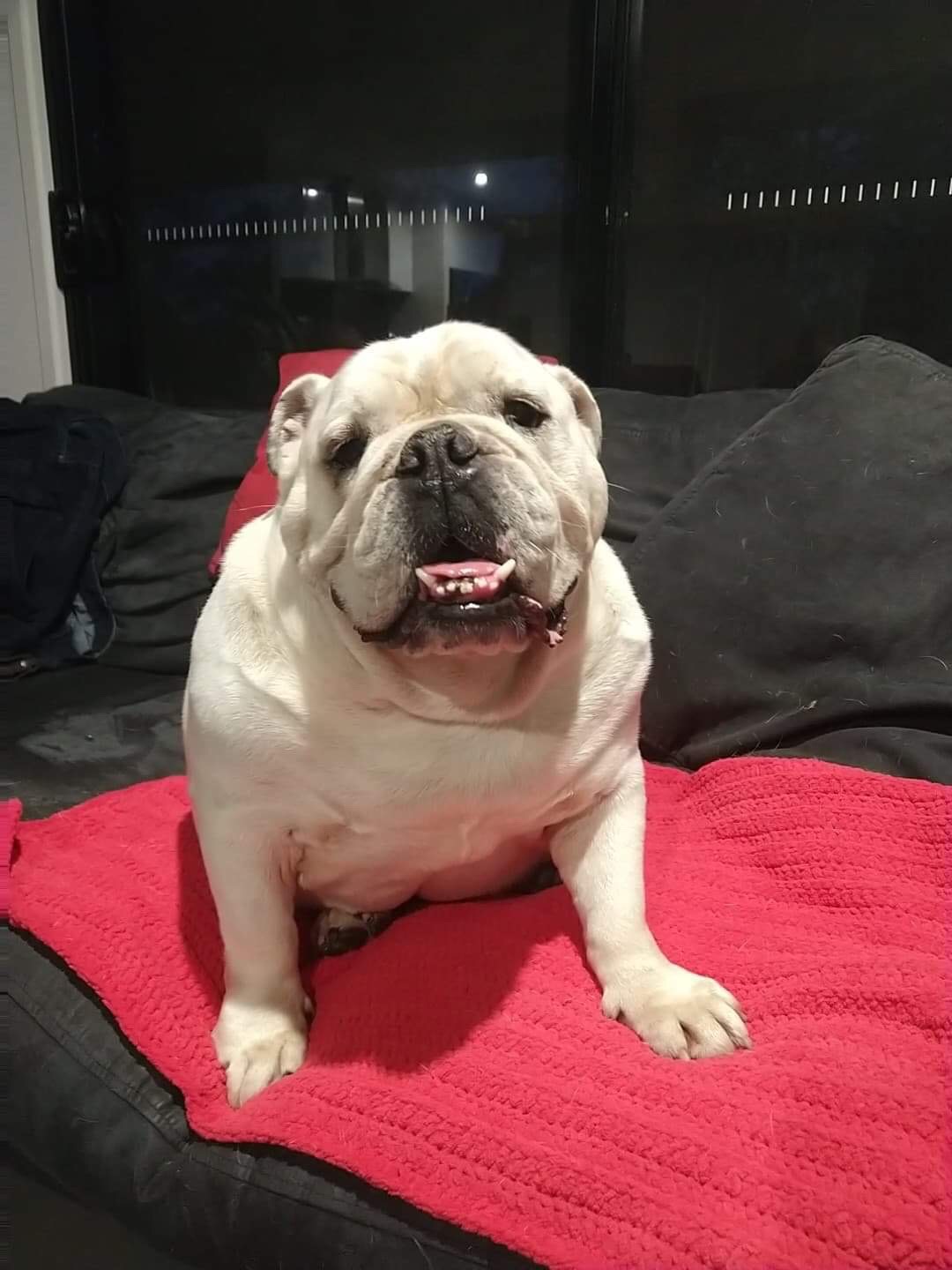Boof loves to have a swim in his pool on hot days but being mindful of his breed will need to be able to have access to air conditioning etc. Boof does enjoy sleeping inside at night (often on the couch - but happy to go to his spot with a blanket under him)