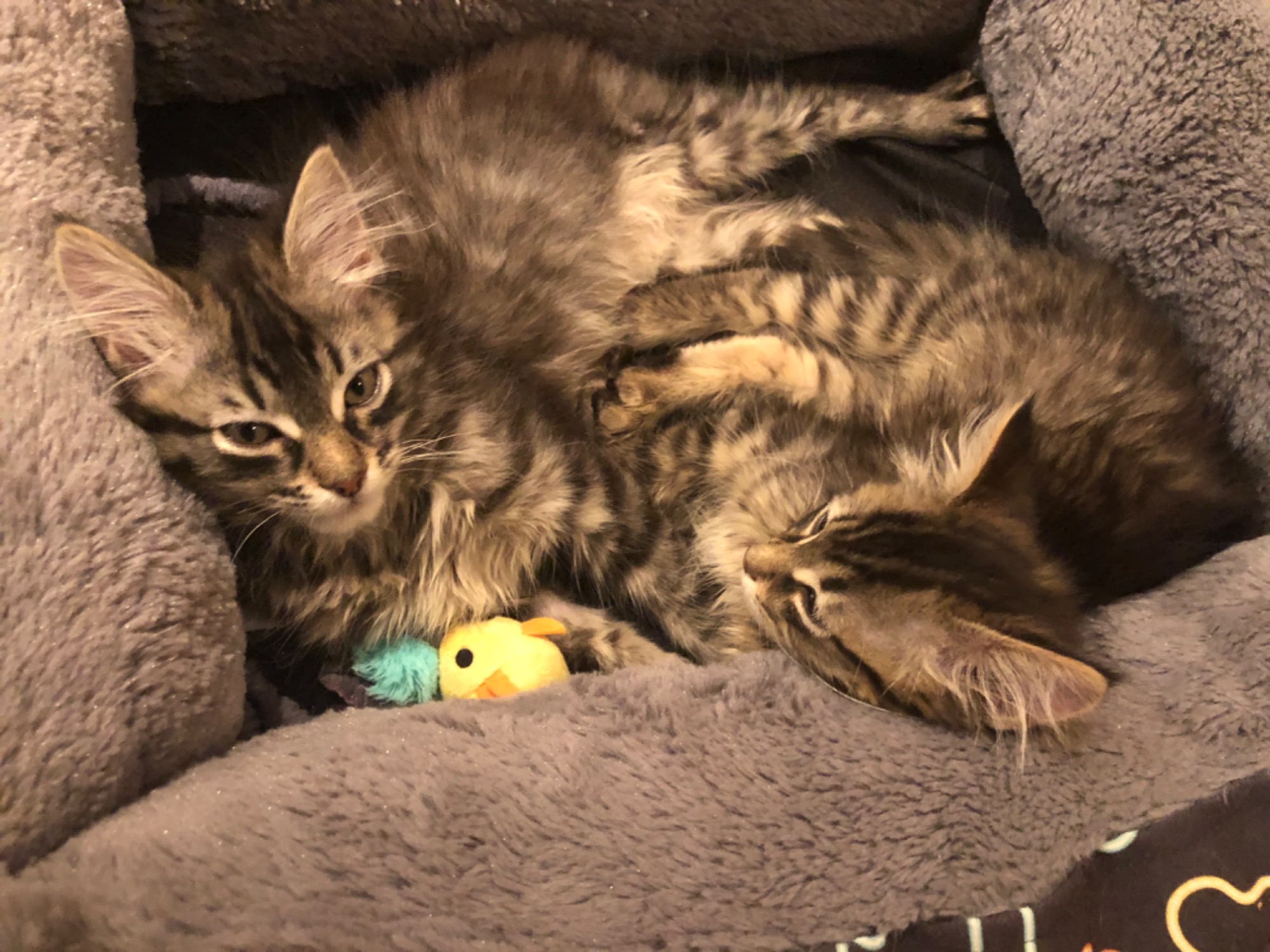Meet Gus he is a twin brother to Gaston and are are adorable. Now 13 weeks old, these kittens are so much fun. They play together all day are fine with staying indoors, eating wet and dry food and using the kitty litter. Gus is used to other cats friendly dogs and small humans. He can be shy at first.