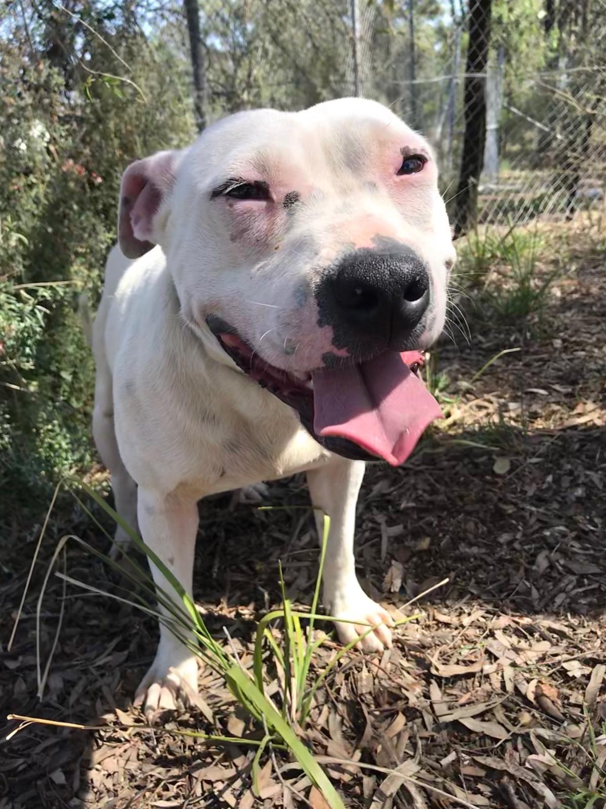 Hi, I’m Poppy. I am a super sweet, happy, smiley, bubbly and fun girl. I am a Staffordshire Bull terrier X and I am approx. 1 year old. I love everyone I meet and I have been friendly with the other dogs at the shelter. I am very affectionate, I love a pat, cuddle and most happiest when getting a belly rub. I love my walks and would love a new home where I can be involved in daily activities. I am very well behaved and know basic commands. I am best suited to a home without small children, I do love them but can get a little jumpy when I’m excited. If you already have a dog, please bring them in for a meet and greet first. Come in and meet Poppy today!