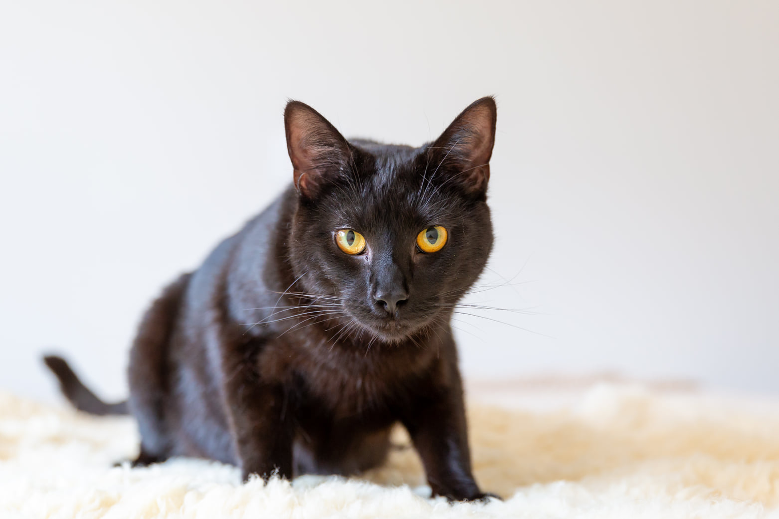 Finn is a big boy, with a glossy black coat and the most amazing orange eyes.