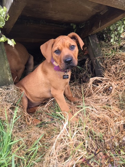 Amillius is very energetic and outgoing. She loves playing with her brother so would love some dog company, or plenty of attention from her human friends. Amillius on her own is very loving and smoochy, a beautifully natured dog that loves mini humans as well, so if you have a family she would fit in well. Some basic training is still needed (toilet training, obedience) but to be expected as she's only 9 weeks old. She will continue to grow so would need plenty of space to run around, or lots of walks. A lovely puppy who will absorb everything that you want to teach her!