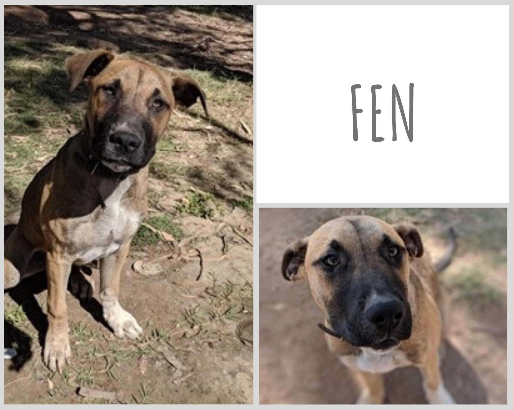Mickey was the exuberant, over the top teenager, who joined PHC when his older owners found him difficult to manage... Since then, he has been fostered with Dave and has been learning to react with a little more control and he has been adding some manners to his repertoire.... Dave has given him the more manly name of Fen and he is responding well to his new name.