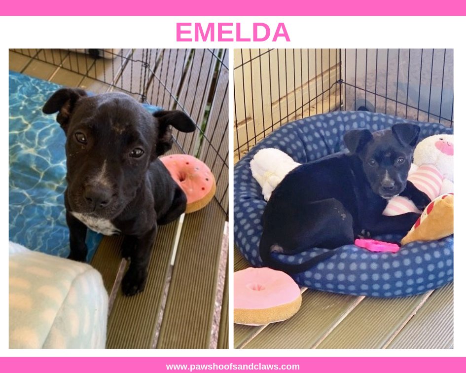 Emelda is a little black and white beauty with possible Staffy or Labrador in her breeding. She is about five/six months old now.