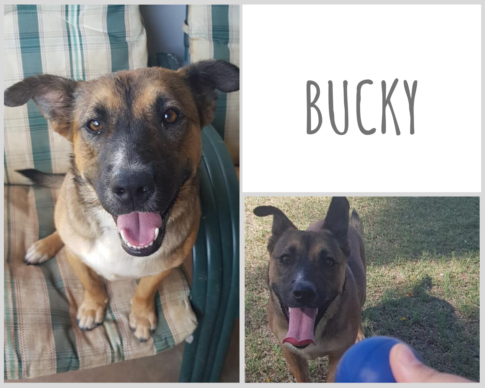 Bucky has the smarts and the good looks of a Shepherd plus he is a super friendly and sociable little man... Our vet estimates his age to be between 6-12 months so he is unlikely to grow much taller.