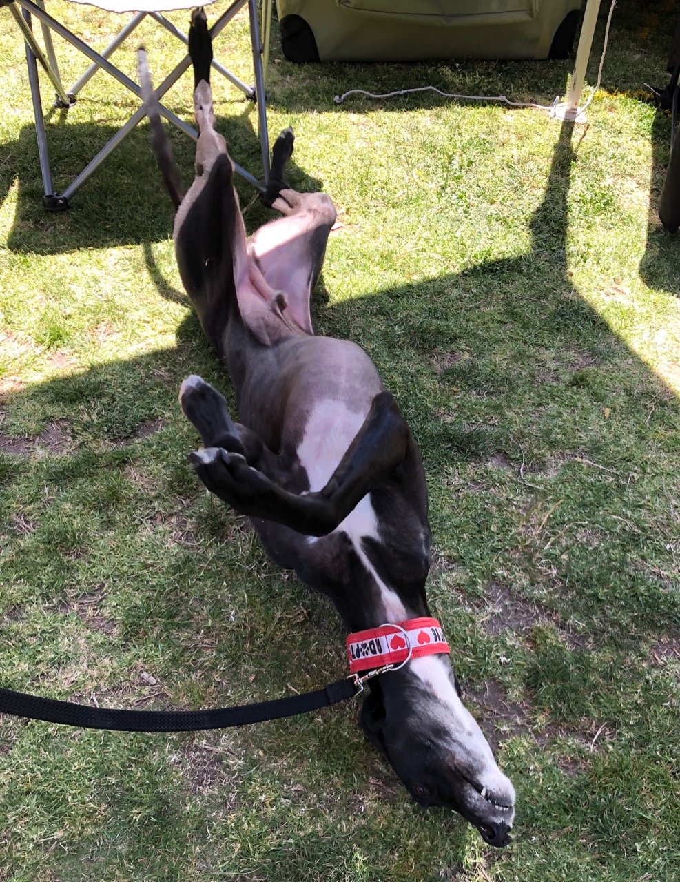 Don’t let any of that deter you. Jet is one of the most affectionate and loving greyhounds we have ever come across. Few dogs love cuddles more. Few dogs learn so quickly. And few dogs love people more. He’s a one-in-a-million dog looking for an equally special owner.