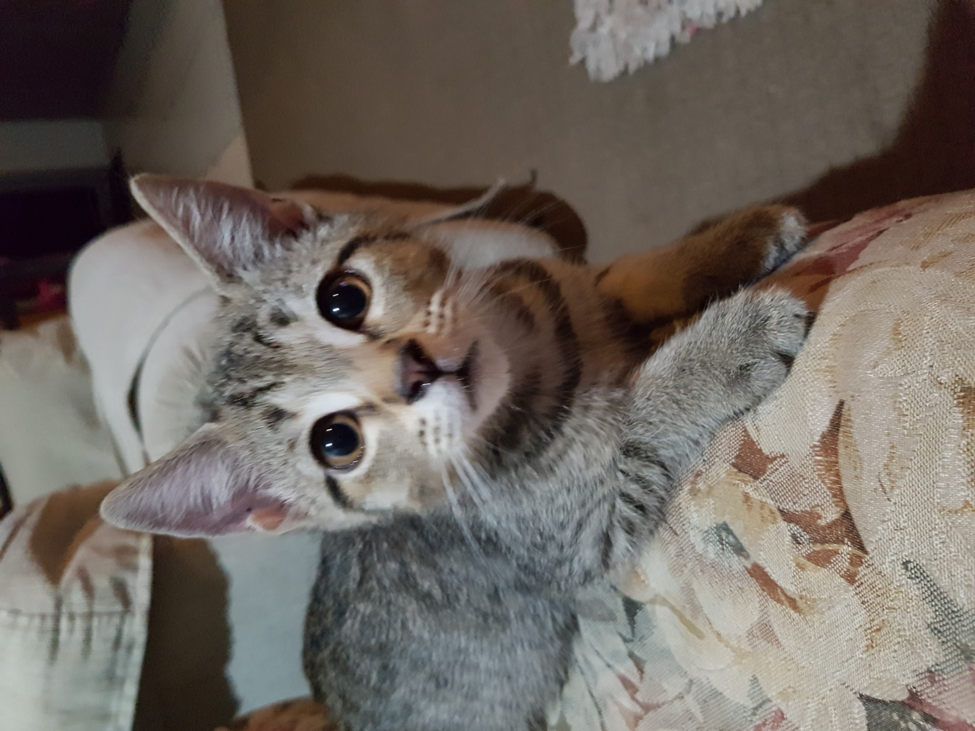 He loves lots if cuddles, loves to be close to you. Plays with other cats, use to little children, looking for his forever home.