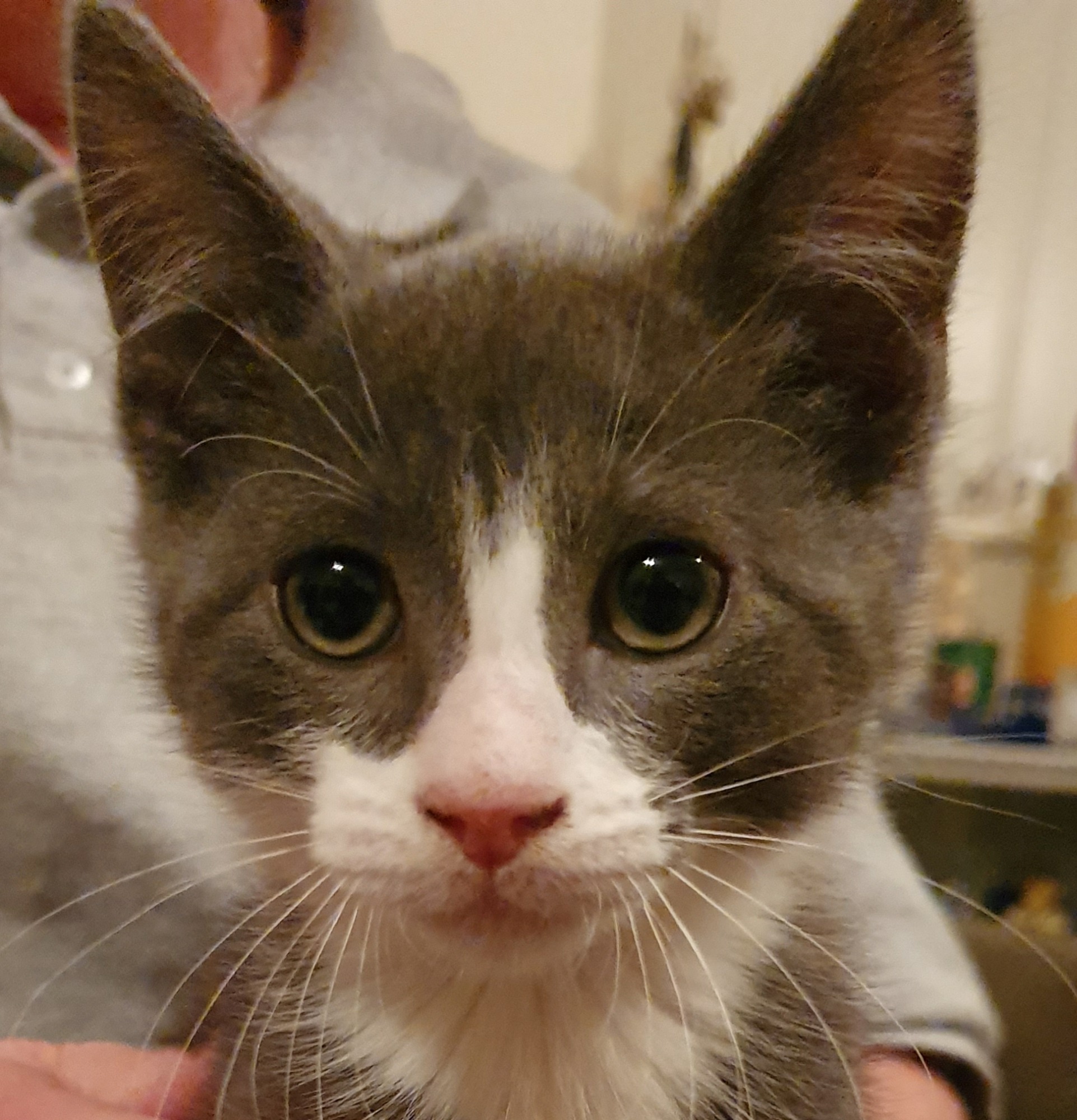 Mercury the male blue and white kitten with the softest fur is looking for a home to call his own.