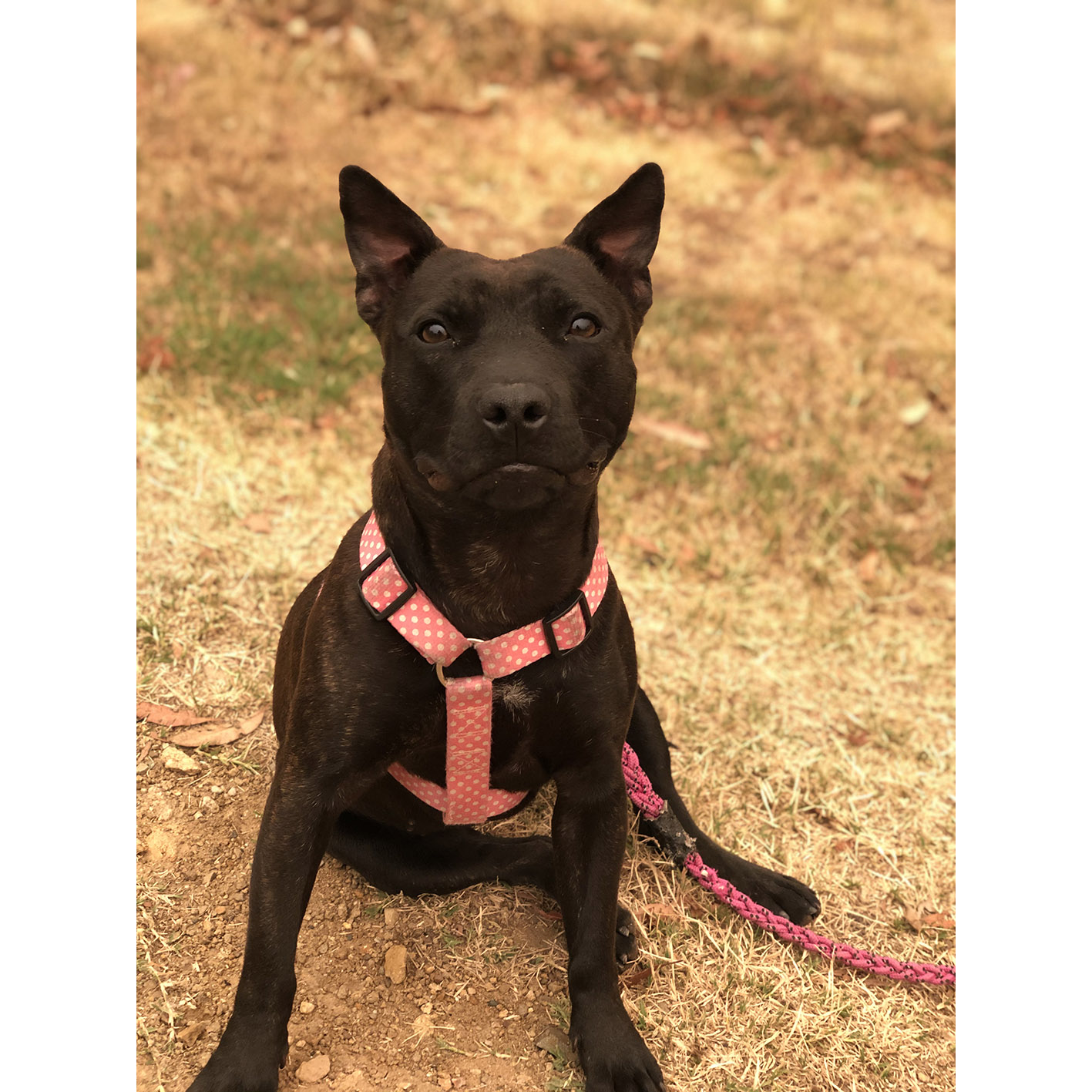 She is friendly with other doggies but is untested with small pocket pets or cats.
