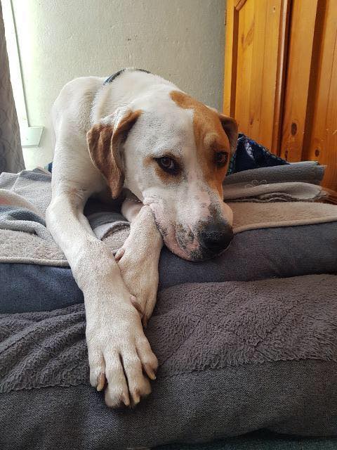 This very happy, large and friendly boy has just completed 3 weeks of training at Wellington Park Kennels and would benefit from further practice for commands such as sit, stay, drop and leave. He is 95% housetrained and a delight on the lead.