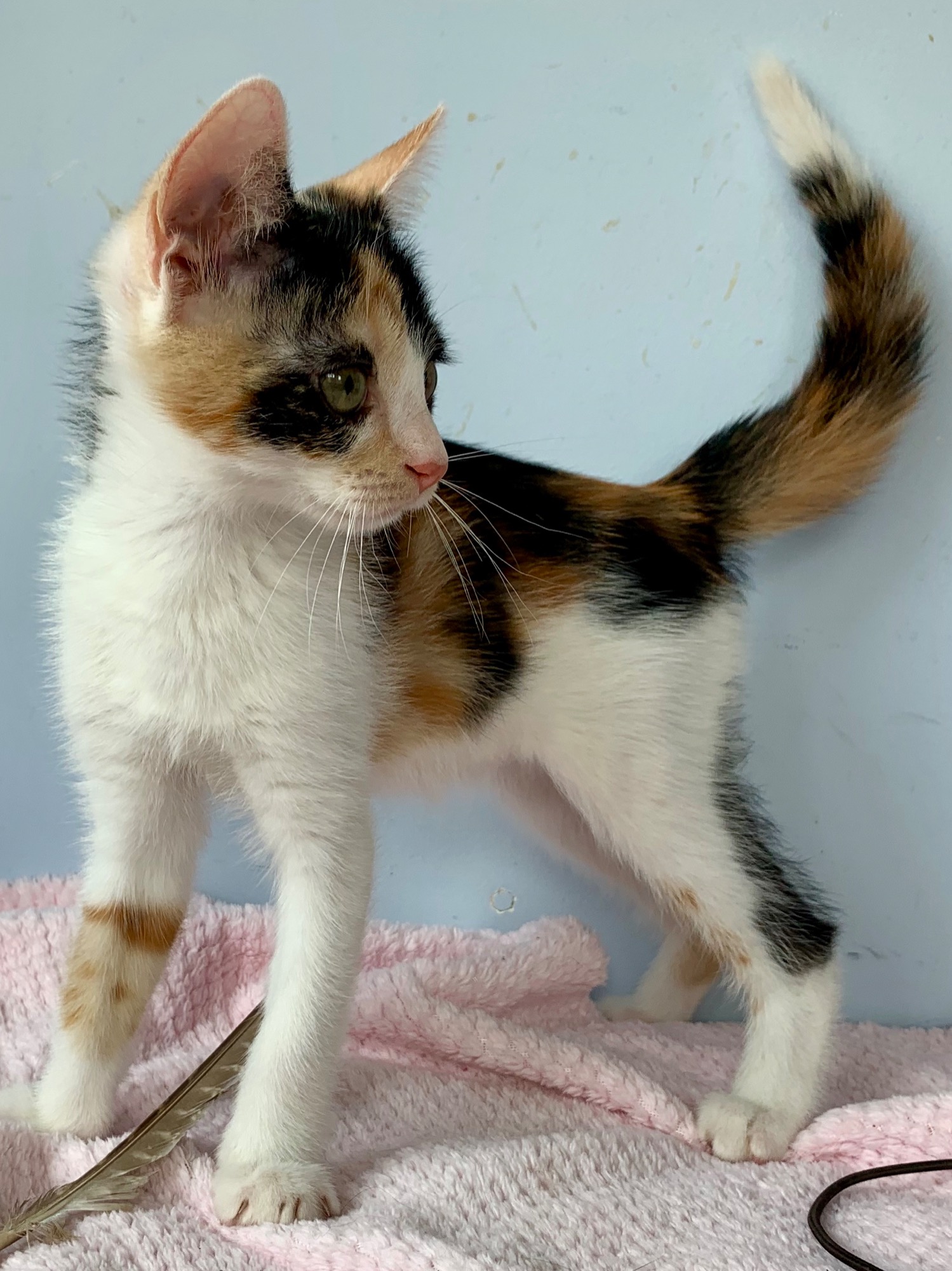 Wednesday is so cute and loves to play. She will keeps you entertained with her antics. She is lively and fast but once she is tired out, she loves to cuddle and purr. Wednesday is well socialised with other animals and will make a great new family member.