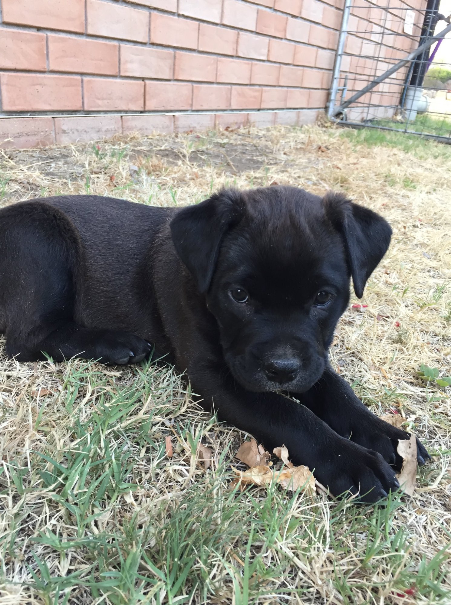 Hi! My name is Smokey. I came into care recently with my brother Bandit. I see you have stopped on my profile, so let me take 30 seconds of your time to explain a little about me. Myself along with my brother sleep outside on a closed in patio. At present we still are not completely toilet trained but are working on it. We are alone few hours per day, but would also be able to adapt to full time workers as adopters. We were a little scared on the trip to the vet, but with positive reinforcement and regular trips I'll be okay. Things I enjoy are balls, human affection and play time with one another. Commands I know so far are sit but am excited to learn more. My ideal adopters are someone who can invest time in me and make me apart of their family. If that soudn like you please contact my rescue today. Love, S x
