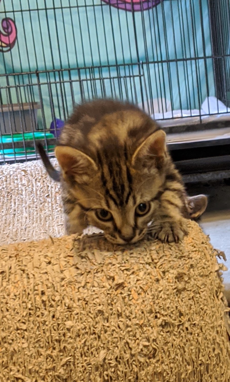 Freddy and his siblings were found in a roof on a construction site. Sadly their mum never came back so one of the nurses hand raised them from about 10 days old. They all love people and love to play. Their foster mum dubbed them the mitten force 5 and she will be very sad to see them go.