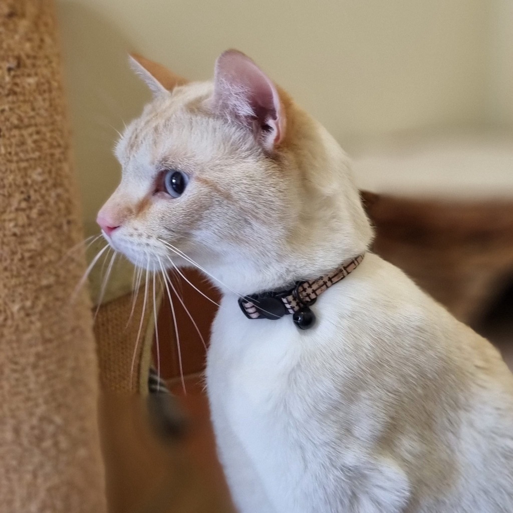 My carer says I'm the most handsome boy ever because I have a soft, velvety champagne-coloured coat and stunning pale blue eyes.... pretty irresistible, if I do say so myself!
