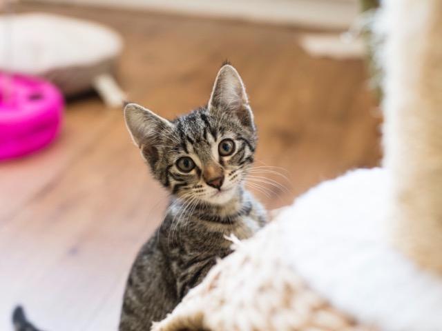 Eddie is adorable mix of playful and smoochy. He absolutely LOVES to play, whether it be with his foster brother or humans. He loves anything shiny! He is powerless to resist a nice shiny necklace, ring or watch. When it comes to sleeping, he likes nothing better than to curl up next to, or ON, his foster humans. His adorable little purrs will melt the hardest of hearts.