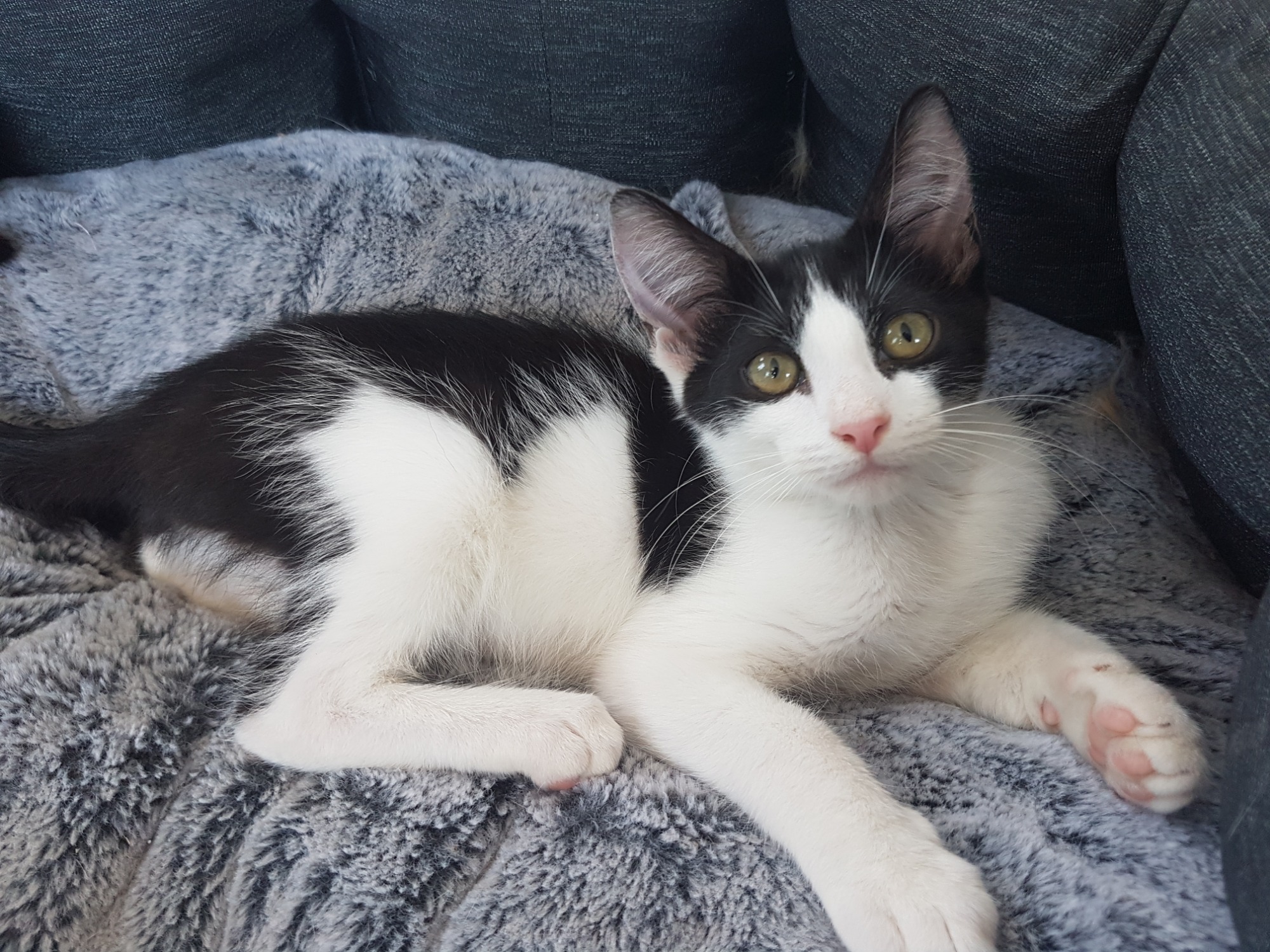 Pepita's perfect forever home would be one with another young and active cat, and a family who have time to play with her and give her lots of love. She doesn't like being on her own, and is very closely bonded to the other kittens in her foster home. Pepita gets along well with the dogs in her foster home, and would suit a family with children.