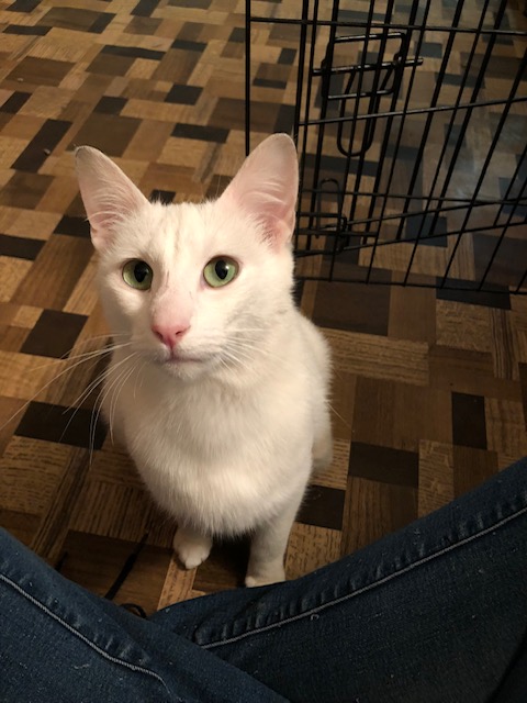 Mia is a stunner... think white Siamese. She is a loving, sweet natured young lady who will win your heart at soon as you meet her. Mia has reared her four babies and is now looking for her very own family. Could it be yours?