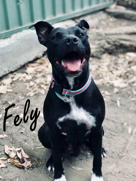 Fely is extremely dog friendly and has previously lived with another smaller sized canine boy. She has also lived in harmony with two furry cats but she is not the type of girl who will want to snuggle with them.