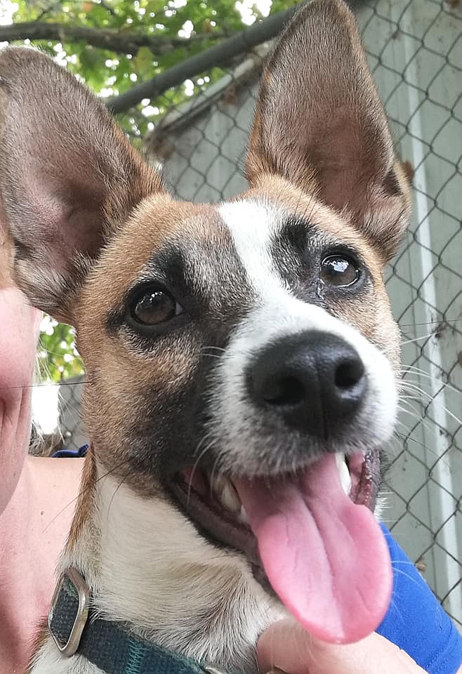 He is an energetic and spritely young dog who appears to get along with other friendly dogs.