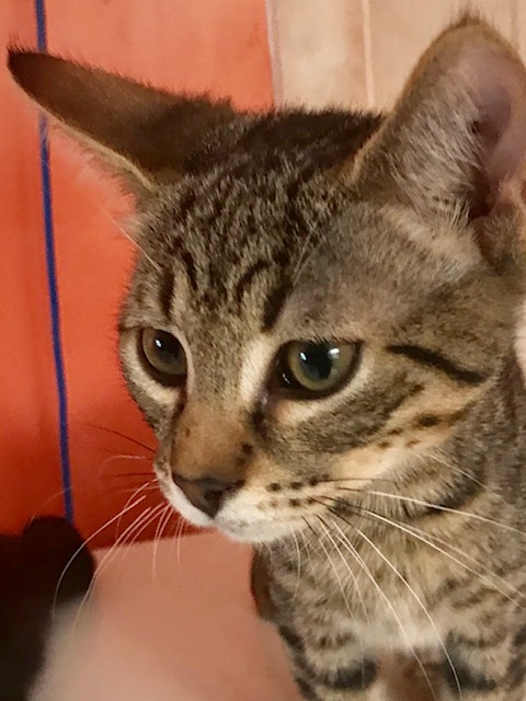 He has the most beautiful spots, not stripes & his markings are quite striking.