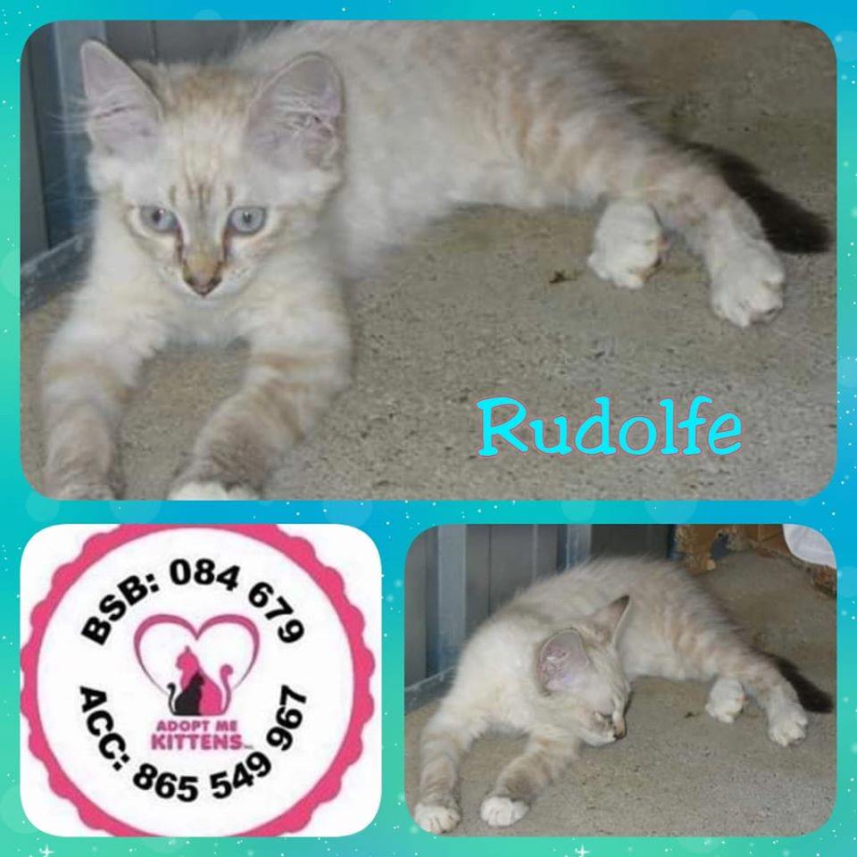 Rudolph is a young man still developing his confidence in the big world but doing well. Eating and using the litter tray. A very handsome boy.