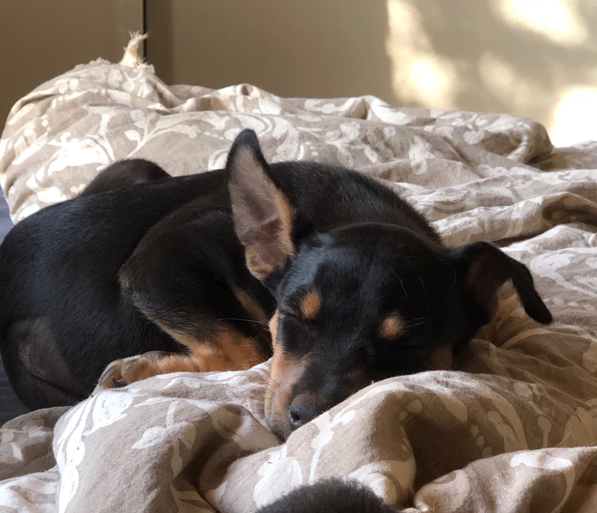 Dora is a sweet gentle little soul who is very people focussed. She loves nothing more than a cuddle, lying on her back for a belly rub and staring into your eyes! She’s a pup who really knows how to relax. But, cuddle over, she’s off to play with the other puppies or explore the yard and potter about with the bits and pieces she finds. She’s a water baby who loves the paddling pool or playing under the hose, but also treasures her special time cuddling up on the bed.