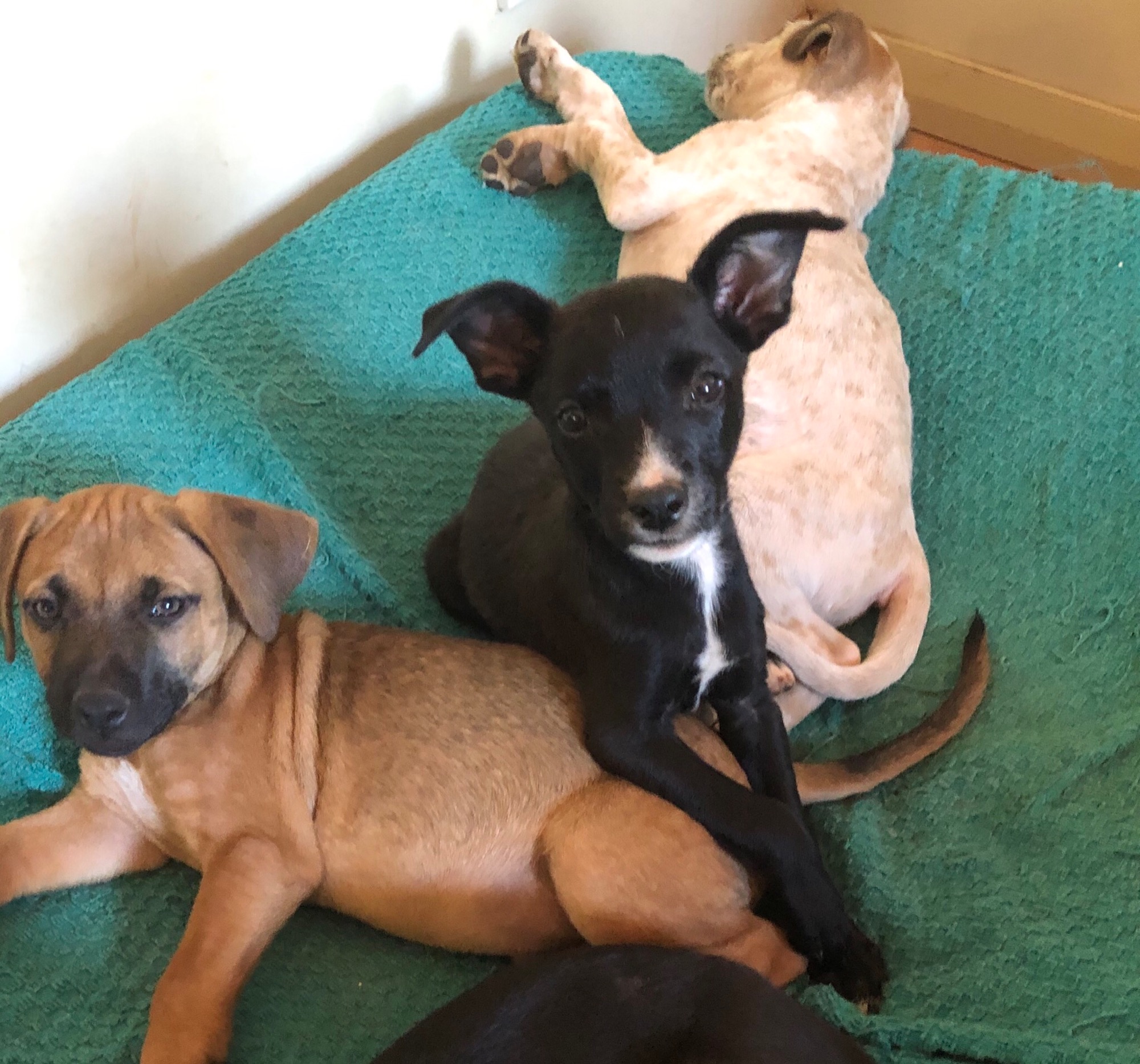 This dainty, adorable little pup really loves the water. She delights in the paddling pool, hose play or just sitting in the drinking water! As a result she’s often covered in sticks and leaves, looking a bit bedraggled but very pleased with herself. Pixie learnt her name quickly and responds to being called. She always tries to do the right thing and is clearly a clever little girl. While not related to any of the other puppies currently in care, she has built great relationships with them and with the adult dogs. Overall, she’s just a delightful, happy-natured pup.