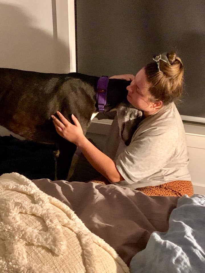 Riley is the most cuddly, affectionate and well mannered greyhound. He loves to put his head on your shoulder and receive ear scratches and kisses. He always returns the favour with a lick and a nuzzle of his cheek on yours.