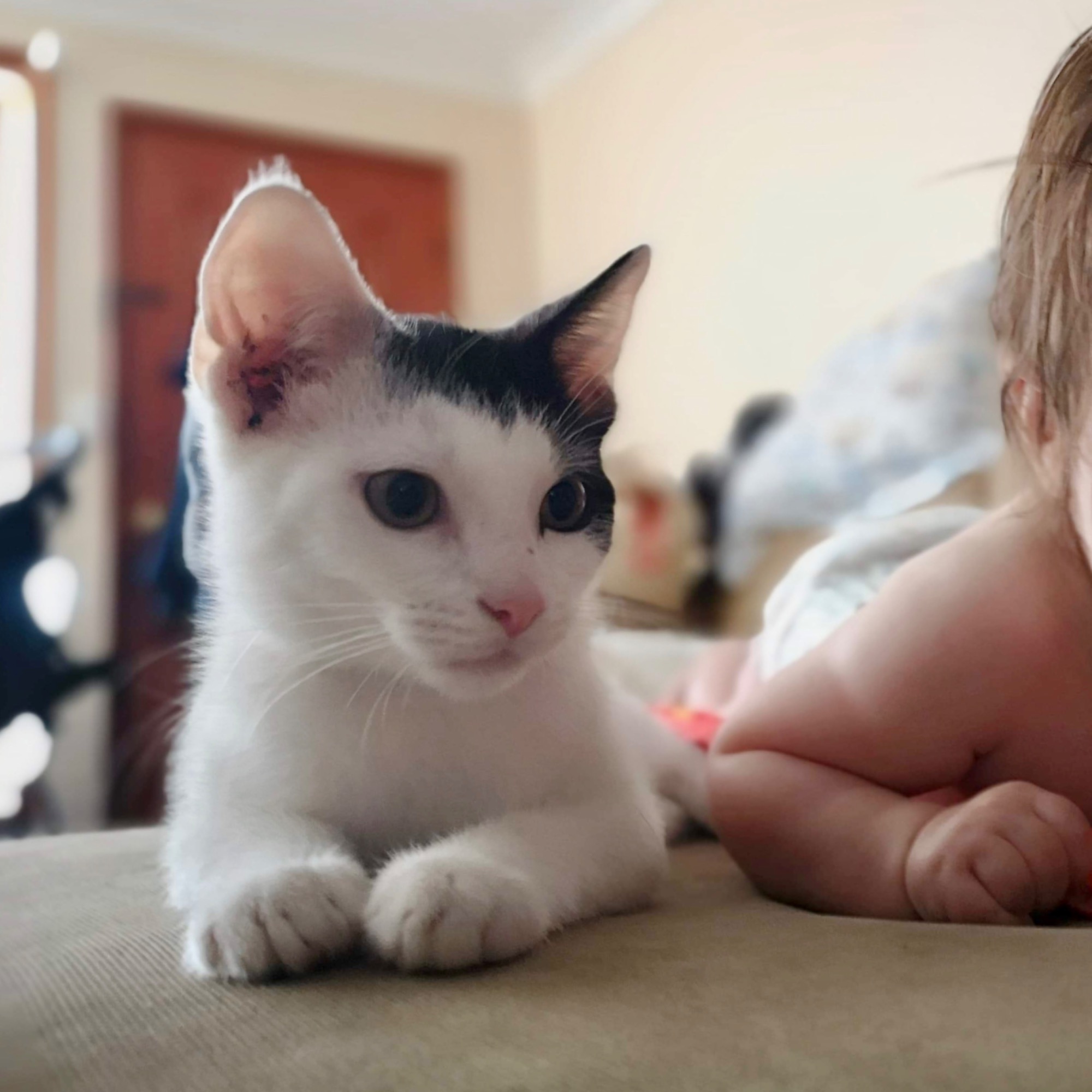 When you look at Zoro, you truly believe he is a dog who got stuck in a cats body. Zoro lives his life just so he can shower humans, cats and dogs in love. He rides the vacuum cleaner like a horse and smooches the 50kg dog in kisses. Zoro is the reason my 4 month old daughter rolled over for the first time, and my scared of everything older cat, learnt how to play again. He is more than just a cat....he's a loyal, silly goofball, that loves everyone who lives under the same roof. Happy, playful & naive. This boy is bomb proof. Dogs, cats, humans, babies....nothing scares him!