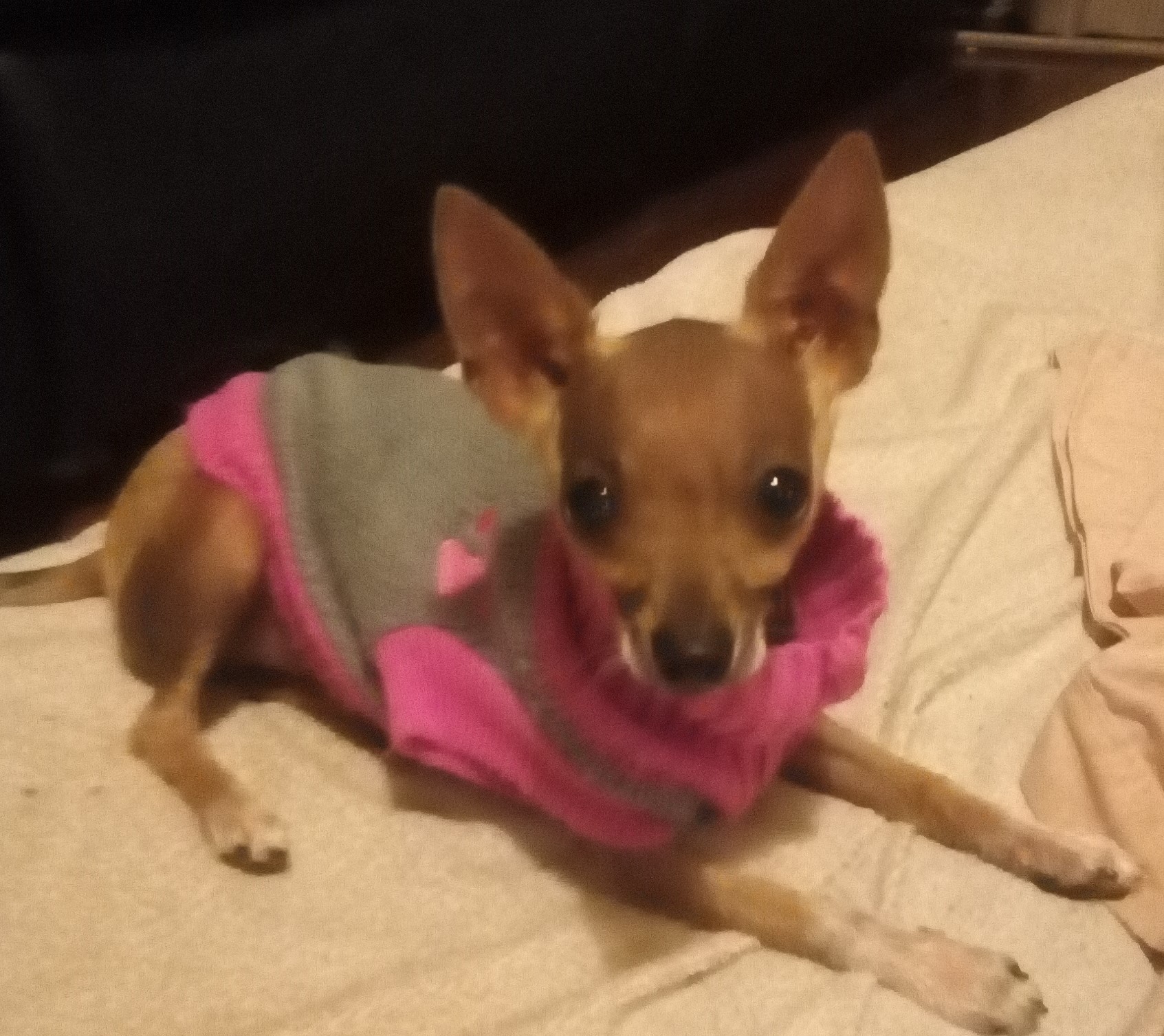 Paddington is a one and a half year old Chihuahua male. He currently weights in at 2.5kg. Although small this boy has spunk, and wants to play,play play. He loves people and will make for a wonderful close companion pet.He likes to cuddle on your lap and bonds to both men and women. He is shy and timid upon first meeting new people but after a few hours will be wanting to kiss you.