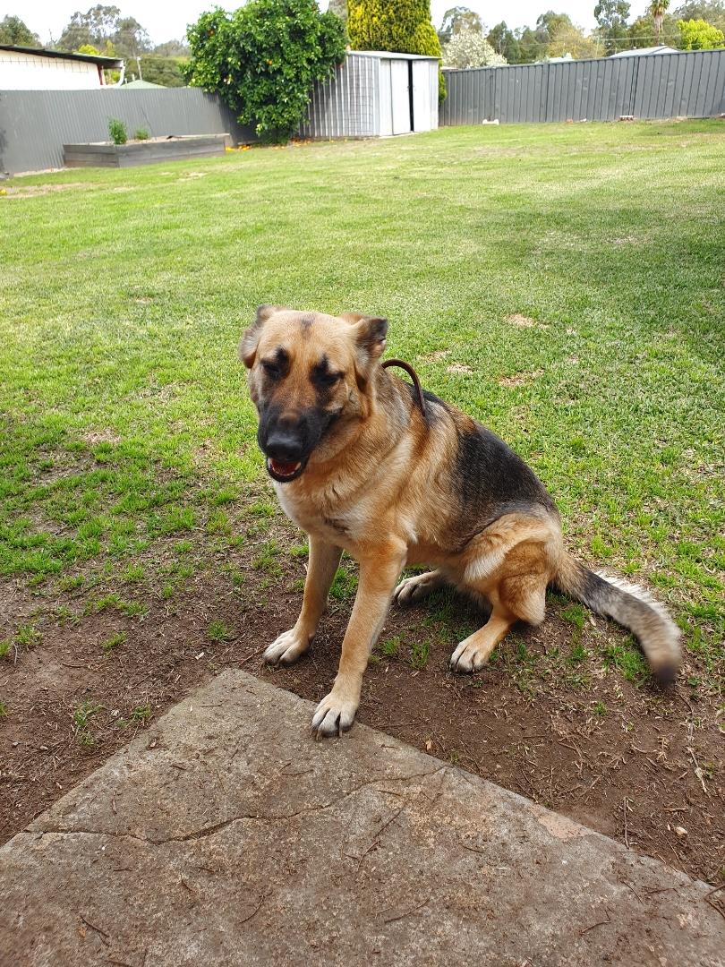 Cleo is currently living with a foster carer and other German Shepherds but has not been tested with small dogs, cats or pocket pets.