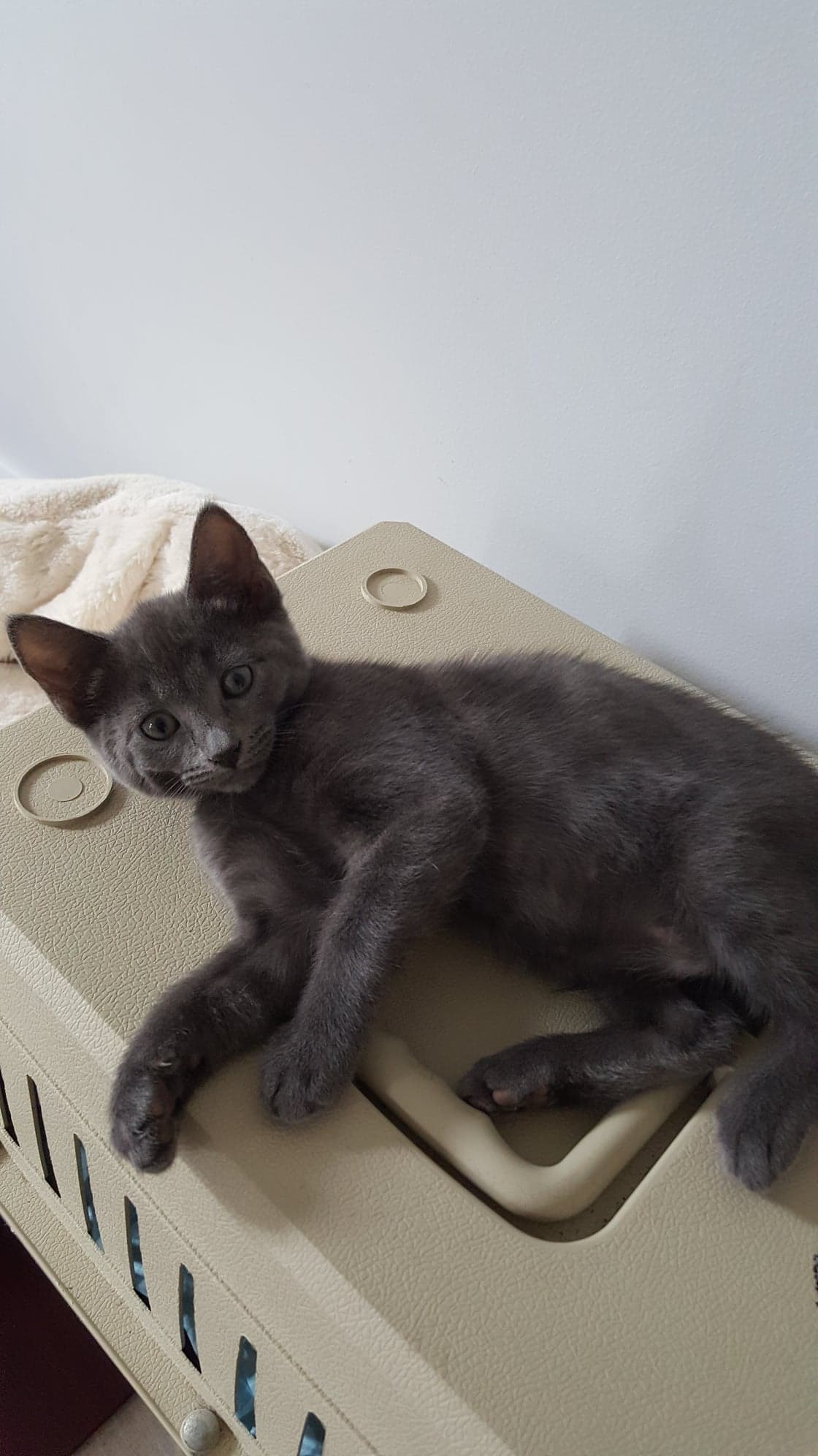 Candice is a short haired blue female who has to know what is going on. She is involved in games and cuddles and is a gentle girl.