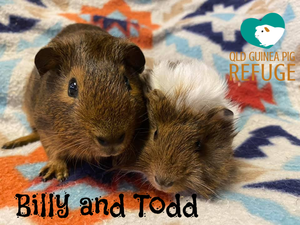 Billy and Todd must be adopted together as they are a bonded pair. As they have so much baby energy, Billy and Todd will need an indoor home without ramps, and are NOT suitable for children under 13 years of age, due to their constant wriggling around. If their cage is made from C & C grids, the sides must be lined, as Billy and Todd can easily fit through the grids and escape.